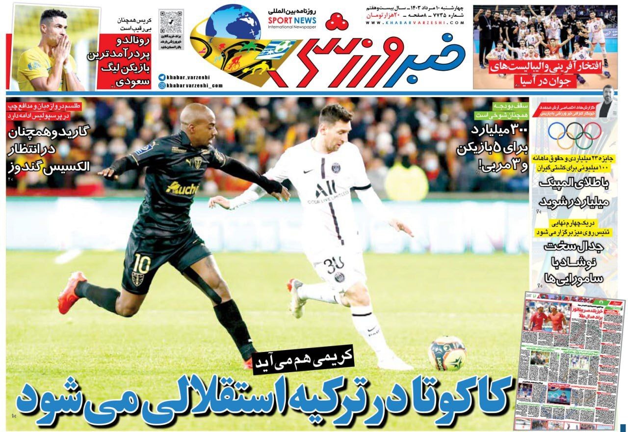 روزنامه‌های ورزشی چهارشنبه ۱۰ مرداد ۱۴۰۳