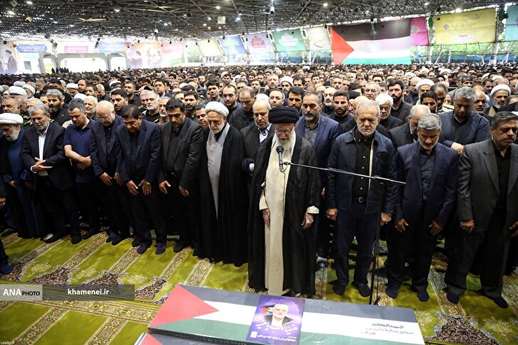 اقامه نماز رهبر انقلاب بر پیکر مجاهد بزرگ شهید اسماعیل هنیه