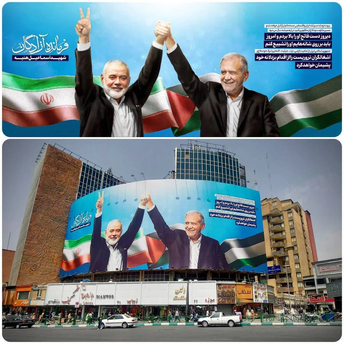 همزمان با مراسم تشییع شهید اسماعیل هنیه در تهران، از جدیدترین دیوارنگاره میدان ولیعصر (عج) با شعار «فرمانده آزادگان» رونمایی شد.