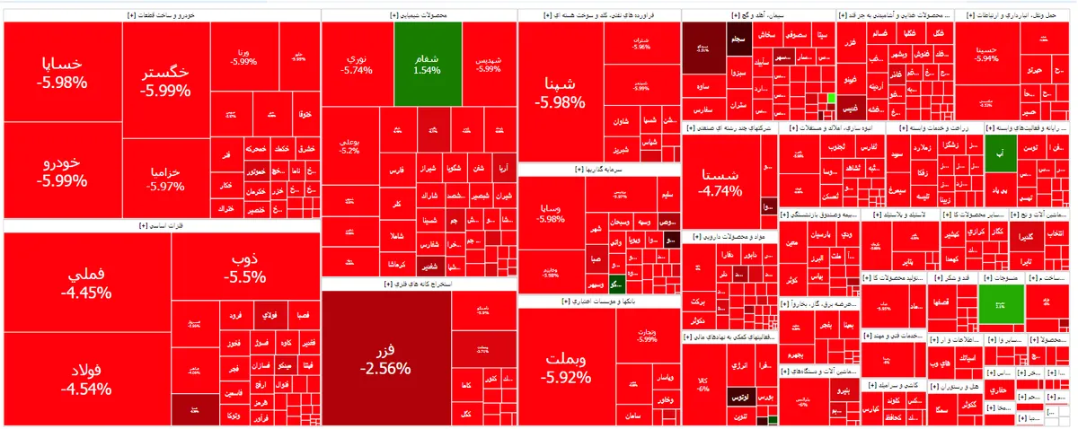 شاخص کل بورس تهران در پایان معاملات امروز (شنبه، ۱۳ مردادماه) با ۶۱ هزار و ۷۰۵.۸۵ واحد کاهش، در ارتفاع ۲ میلیون و ۶ هزار و ۶۶۶ واحد قرار گرفت.
