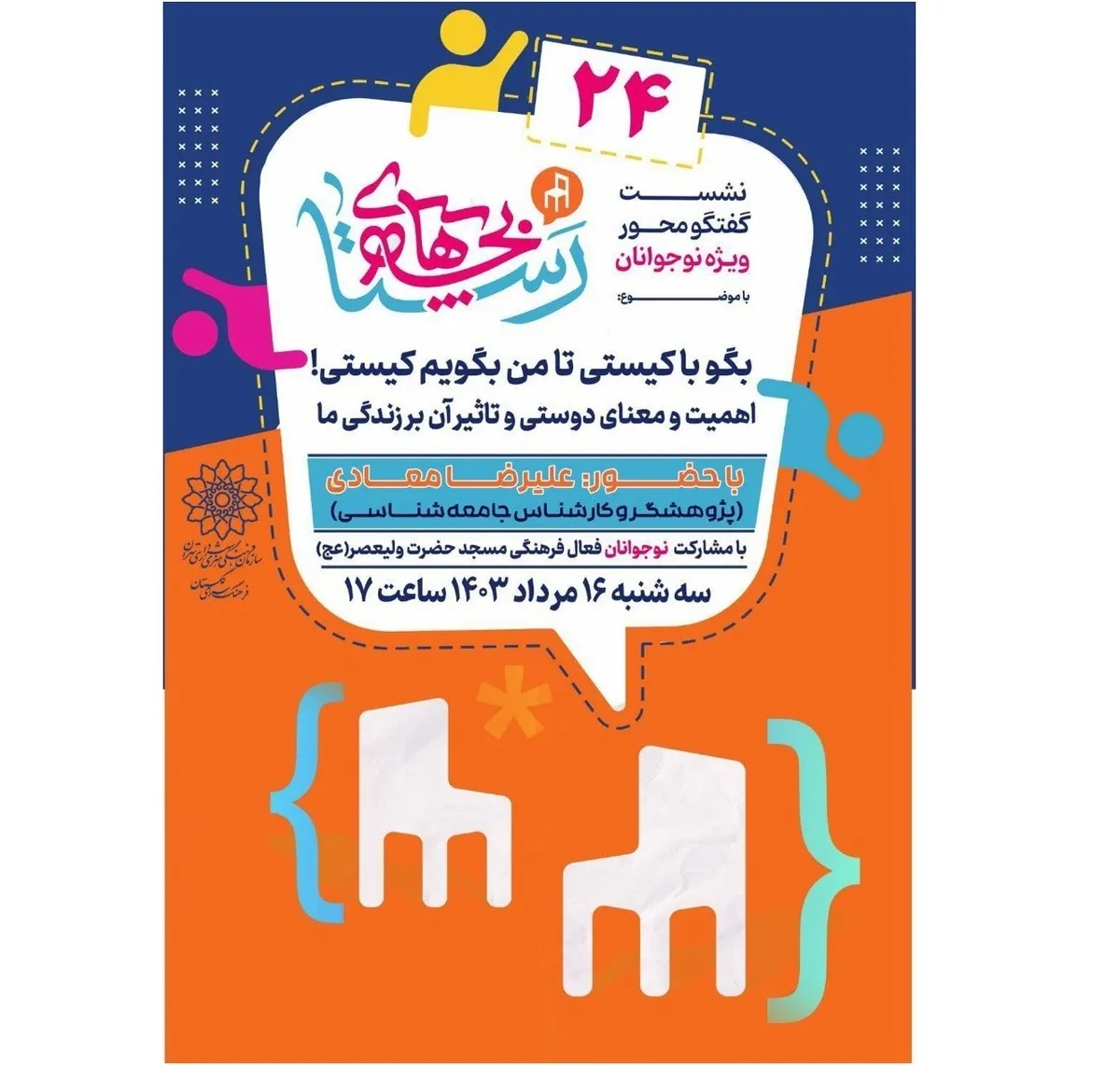 گفتنی است این جلسات از ویژه برنامه «بچههای رستا» با همکاری نوجوان دختر فعال فرهنگی مسجد جامع نارمک مقطع متوسطه دوم و نوجوانان پسر مقطع متوسطه اول و دوم مسجد حضرت ولی عصر (عج) برگزار میشود. نخستین جلسه در روز دوشنبه ۱۵ مرداد از ساعت ۱۰، دومین نشست در روز سهشنبه ۱۶ مرداد از ساعت ۱۷ و سومین گردهمایی نوجوانان رستا در همان روز از ساعت ۱۸:۳۰ در فرهنگسرای گلستان برگزار خواهد شد.