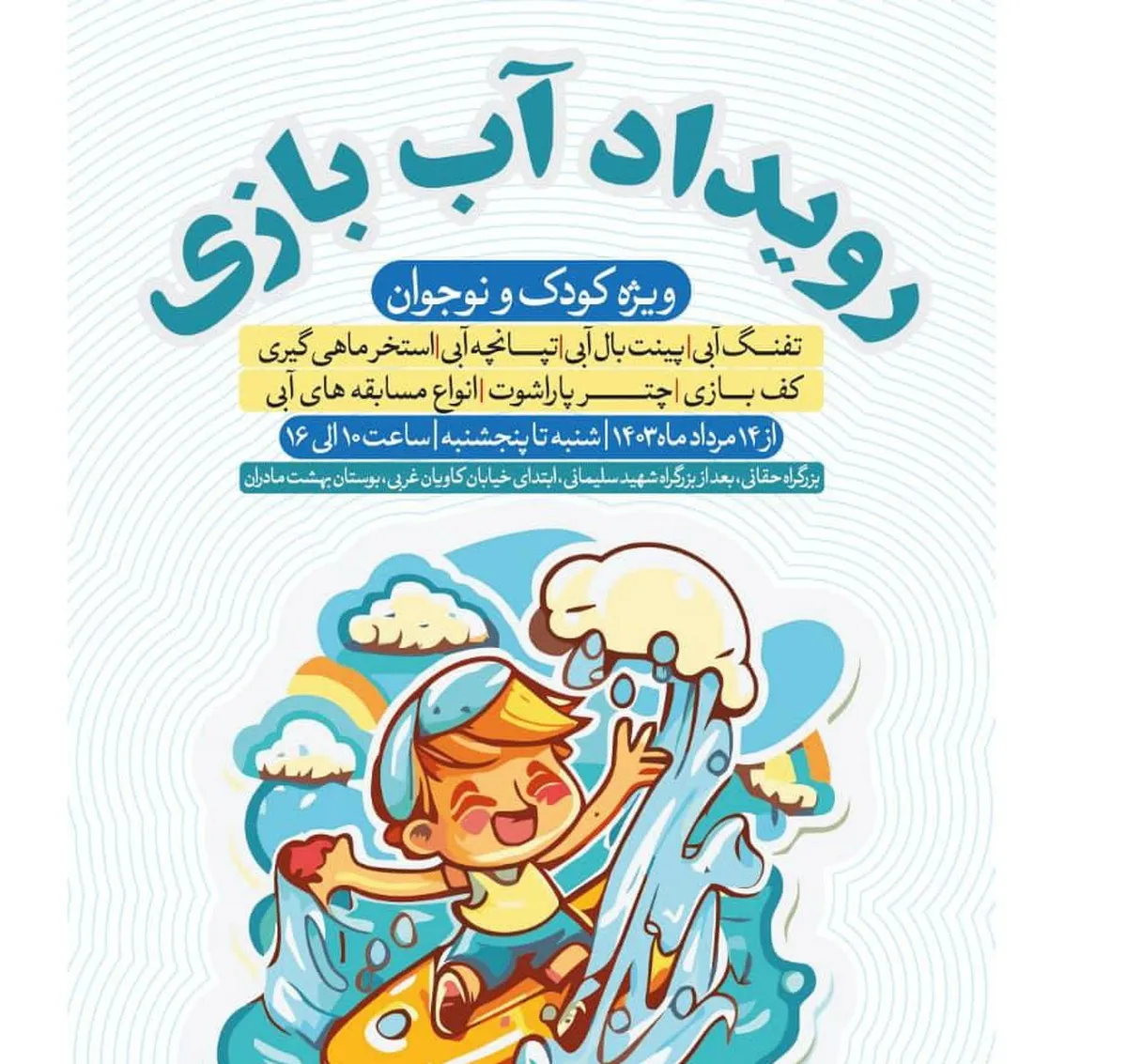 رویداد «آب بازی» ویژه کودک و نوجوان در بوستان «بهشت مادران» برگزار میشود
