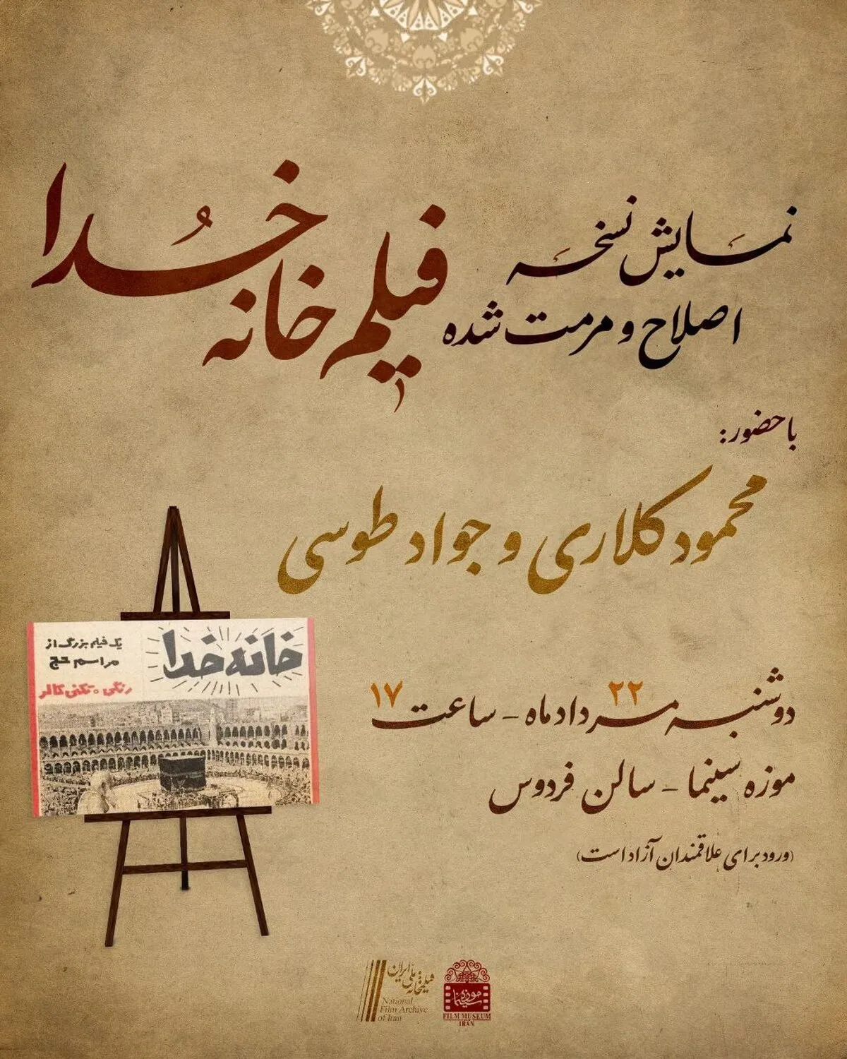 مستند «خانه خدا» با همکاری فیلمخانه ملی ایران که آنرا اصلاح و مرمت کرده است توسط موزه سینما نمایش داده میشود.