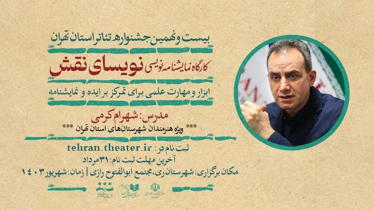 کارگاه «نوشتن برای تئاتر» بخشی از رویکردهای آموزشی بیست و نهمین جشنواره تئاتر استان تهران است که در آن طرح آموزش نمایشنامهنویسی «نویسای نقش» اجرا خواهد شد. طرحی که از سوی معاونت هنری وزارت فرهنگ و ارشاد اسلامی و با همکاری مرکز هنرهای نمایشی در استانها آغازشده است؛ در این طرح؛ شیوهنامه، دستورالعمل و طرح درسی جامعی تدوینشده و هدف آن ارتقا سطح دانش و آگاهی و تربیت نسلی همسو و همراه با جبهه فرهنگی انقلاب اسلامی است.