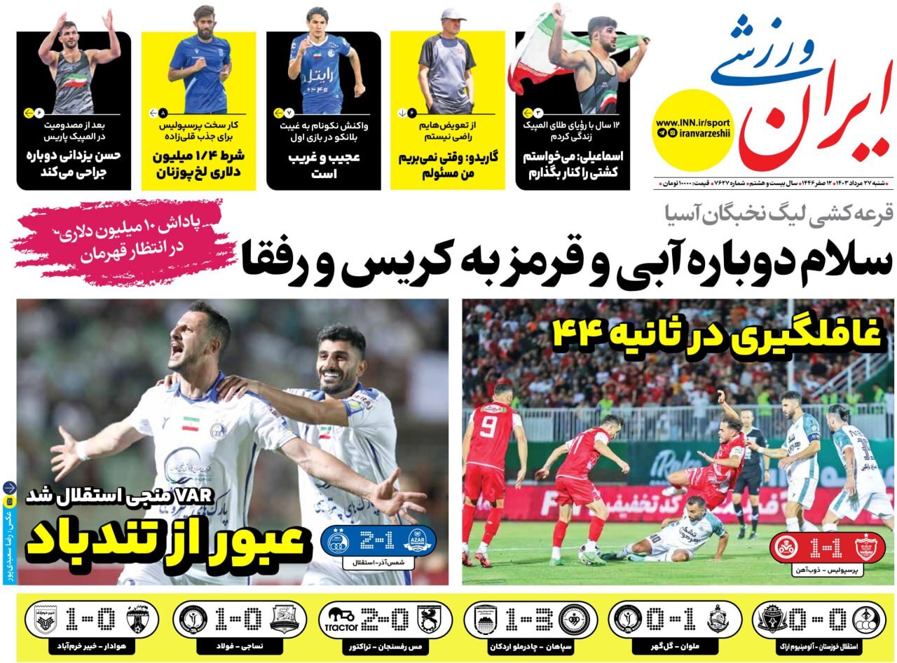 روزنامههای ورزشی شنبه ۲۷ مرداد ۱۴۰۳