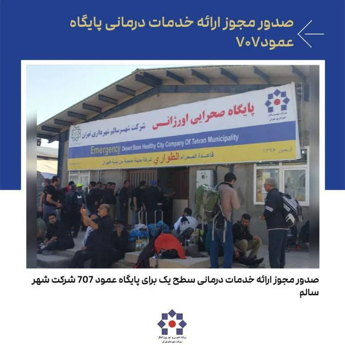 صدور مجوز ارائه خدمات درمانی سطح یک برای پایگاه عمود ۷۰۷ شرکت شهر سالم