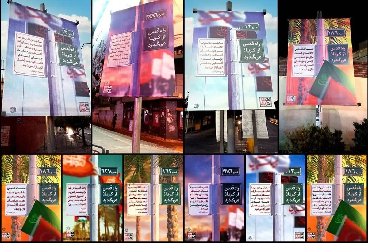 بر اساس این گزارش، در این اکران فرهنگی که از تصاویر عمودهای مختلف مسیر عاشقی رسیدن به حرم اباعبدالله(ع) با شعار "راه قدس از کربلا میگذرد" استفاده شدهاست، از جملاتی بزرگانی همچون: "مسلمانها وقتی در مقابل خصم خودشان مقاومت میکنند، اگرچه خصم آنان ابر قدرتها هم باشند پیروزند." از امام خمینی(ره)،
