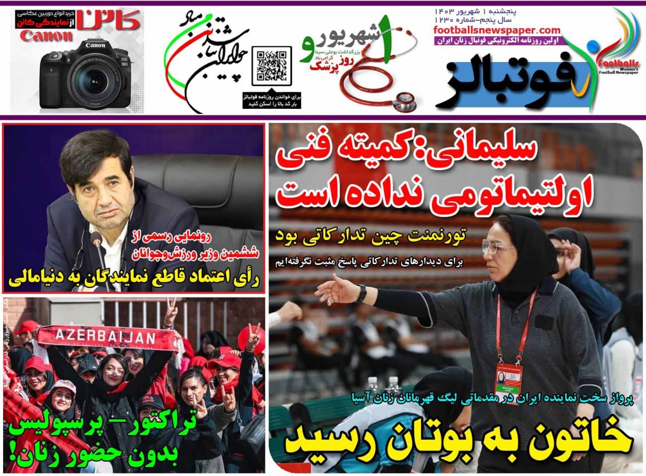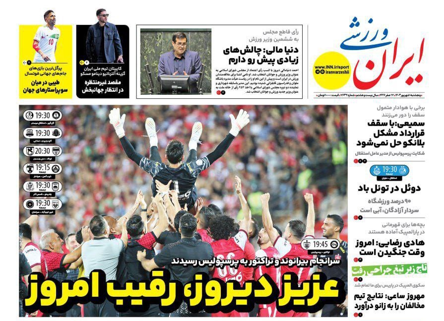 روزنامههای ورزشی پنجشنبه اول شهریور ۱۴۰۳