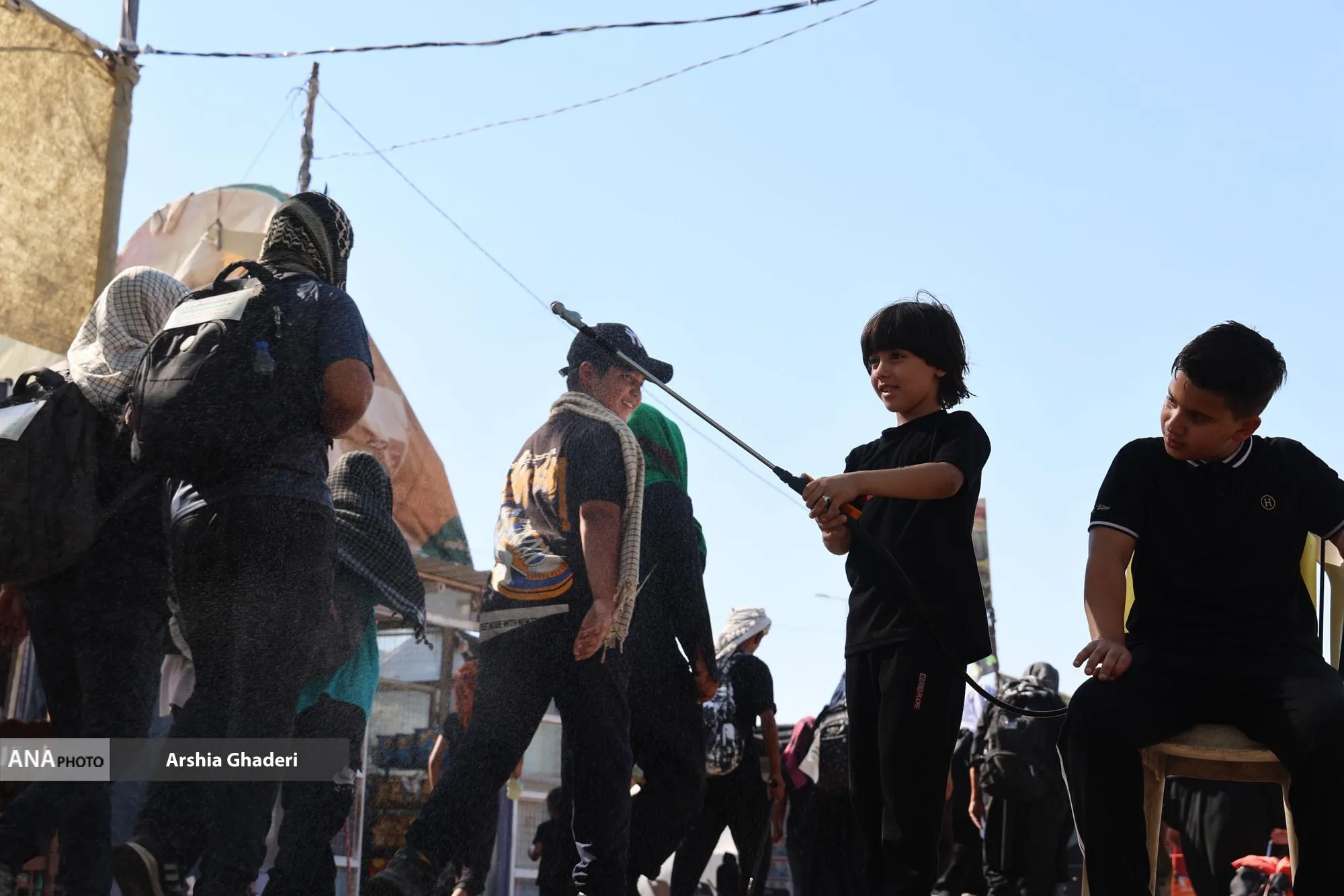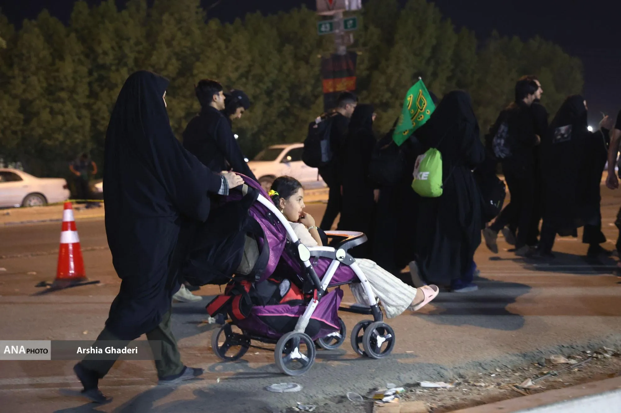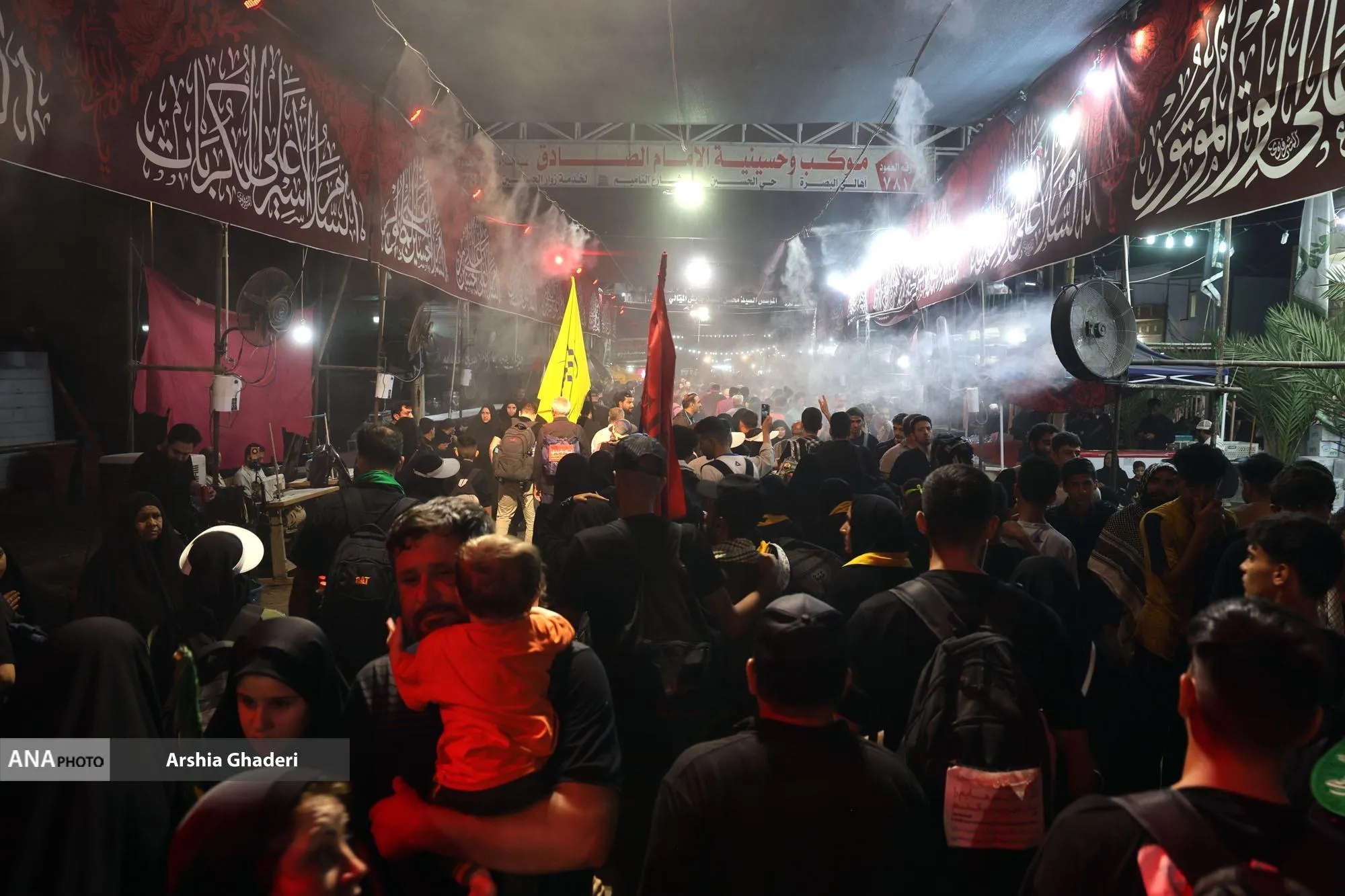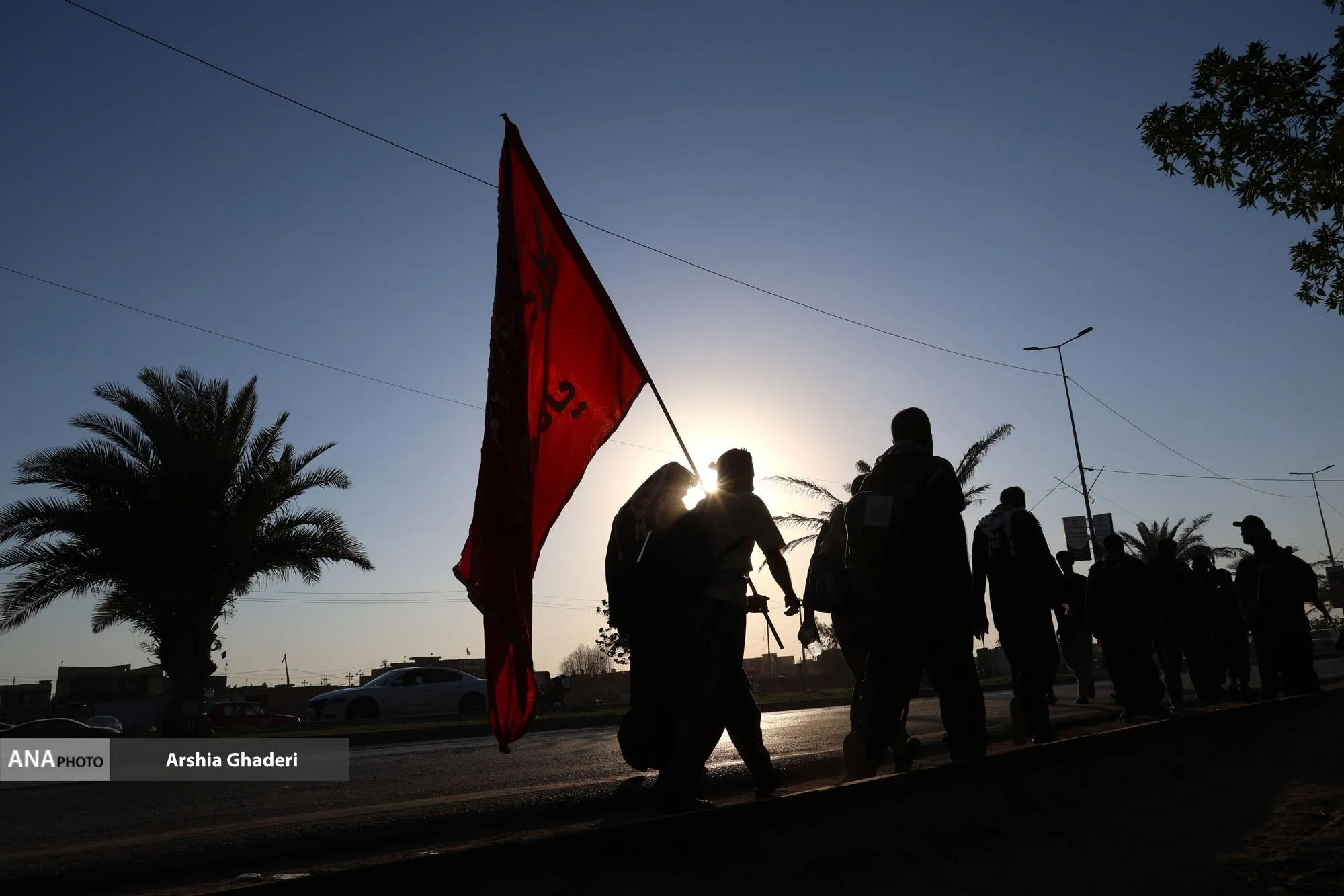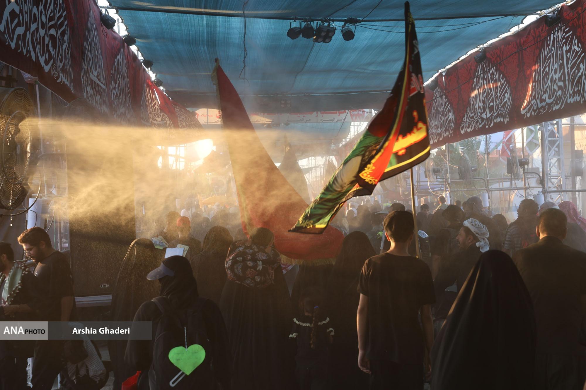 زائران اباعبدالله الحسین علیه السلام در مسیر نجف به کربلای معلی، مسافتی به طول ۸۰ کیلومتر را با پای پیاده طی میکنند تا در مراسم عزاداری اربعین حسینی حضور یابند.