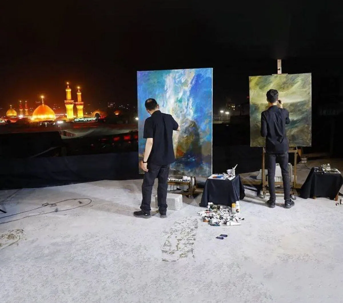 به گزارش گروه فرهنگ و جامعه خبرگزاری علم و فناوری آنا، «حسن روح الامین» و «محمدعلی نادری» به دعوت کمیته فرهنگی ستاد مرکزی اربعین حسینی به کربلای معلی مشرف شدند و در بام کربلا به اجرای نقاشی پرداختند.