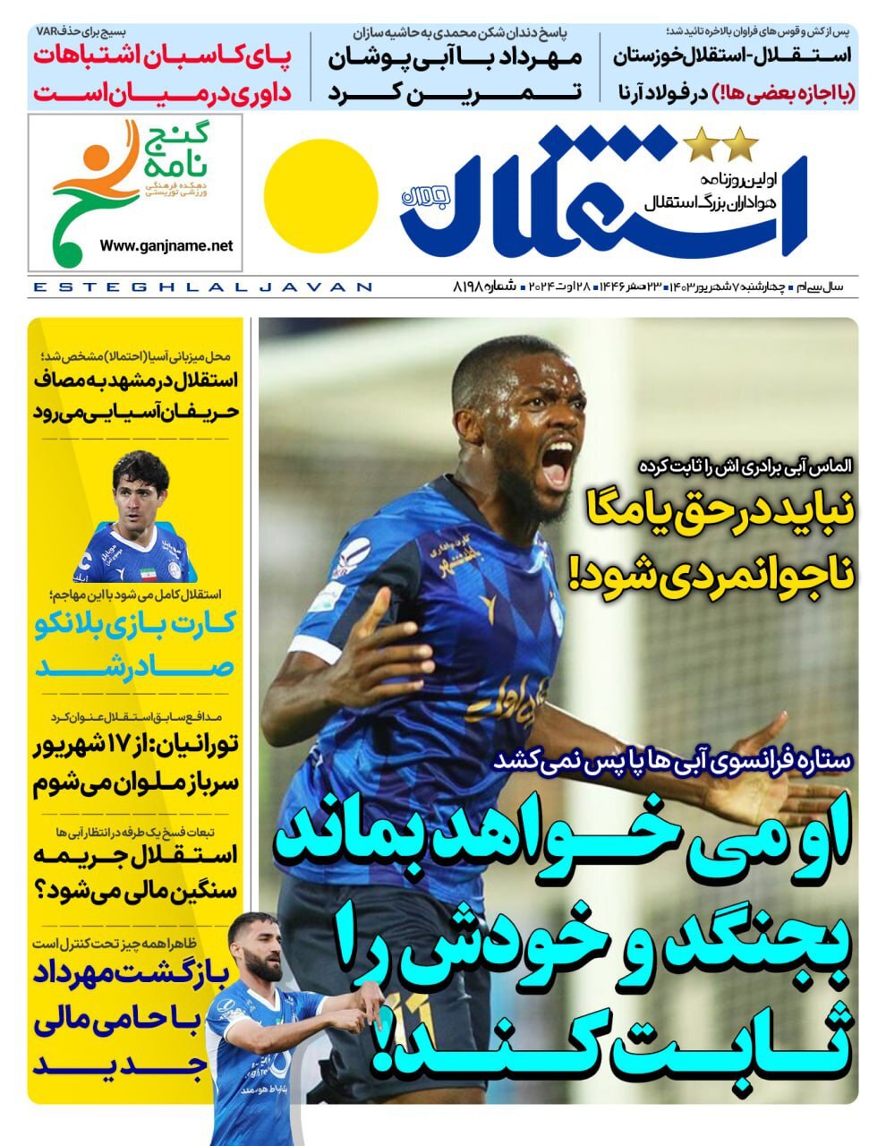 روزنامههای ورزشی چهارشنبه 7 شهریور ۱۴۰۳