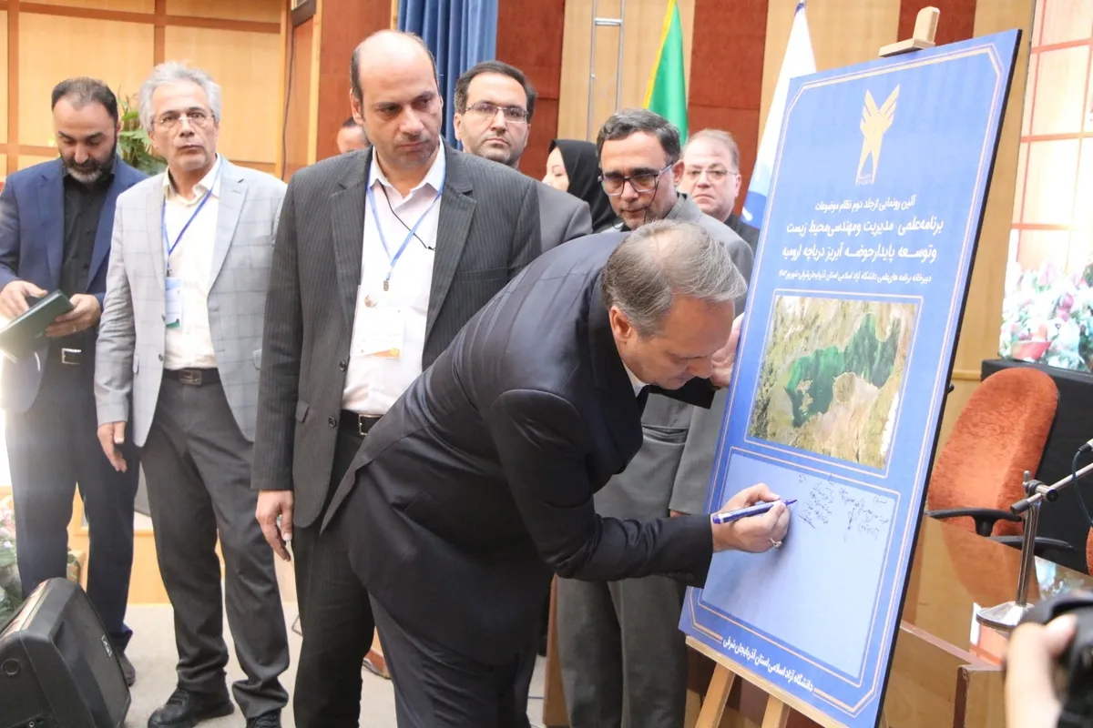 در این مراسم از جلد دوم نظام موضوعات برنامه علمی و مهندسی محیط زیست و توسعه پایدار حوضه آبریز دریاچه ارومیه با حضور بابک نگاهداری رئیس مرکز پژوهشهای مجلس شورای اسلامی، روح الله متفکر آزاد رئیس مجمع نمایندگان استان آذربایجان شرقی، یوسف غفارزاده مدیرعامل شرکت آب منطقهای آذربایجان و آرش رنجبران رییس دانشگاه آزاد اسلامی استان آذربایجان شرقی رونمایی شد.