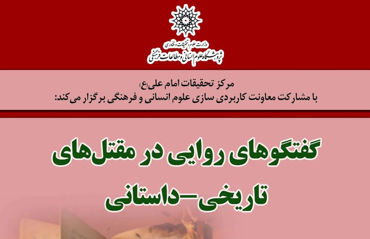به گزارش گروه پژوهش خبرگزاری علم و فناوری آنا؛ مرکز تحقیقات امام علی (ع) با مشارکت معاونت کاربردیسازی پژوهشگاه علوم انسانی و مطالعات فرهنگی نشست گفتگوهای روایی در مقتلهای تاریخی_داستانی را برگزار میکند.