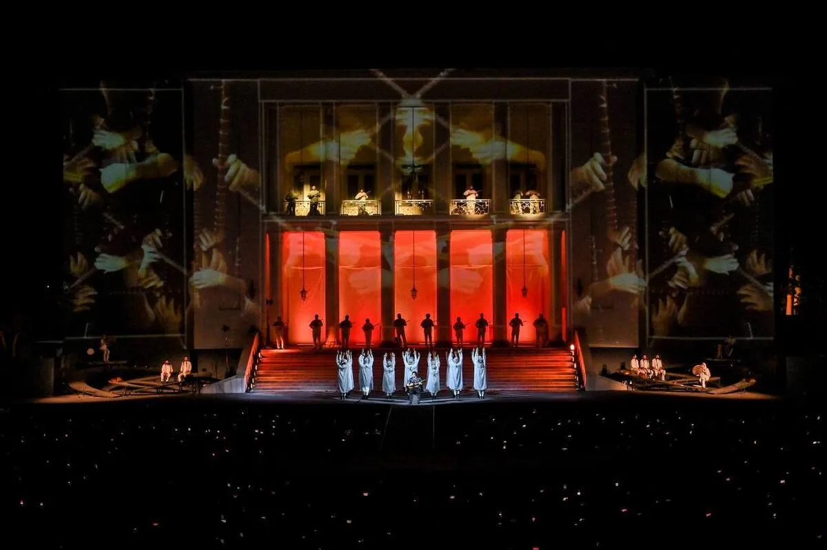 گروه فرهنگ و جامعه خبرگزاری علم و فناوری آنا ـ زهره سعیدی: نمایش یا کنسرت نمایش «سیصد» برای نخستین بار سال ۱۴۰۱ به کارگردانی امیرجدیدی در کاخ سعدآباد روی صحنه رفت و حال برای دومین بار اجراهایش را در مرداد ۱۴۰۳ در کاخ سعدآباد آغاز کرده و این بار سهراب پورناظری به سراغ چهرههای شناخته شده سینما و تئاتر، حمایت بلوبانک، خوانندگی اشکان کمانگری، تهیه کنندگی و کارگردانی هنری تهمورس پورناظری و داستانی به نام «گات» روی صحنه آمده است. بازیگران این نمایش نوید محمدزاده، بهرام رادان، بهرام افشاری، گوهر خیراندیش، دلنیا آرام، علی براتی، هدیه آزیدهاک و اهورا ابوالحسنی هستند و علی نصیریان نیز با ویدئومپینگ روی پرده نمایش پروژه حضور دارد.