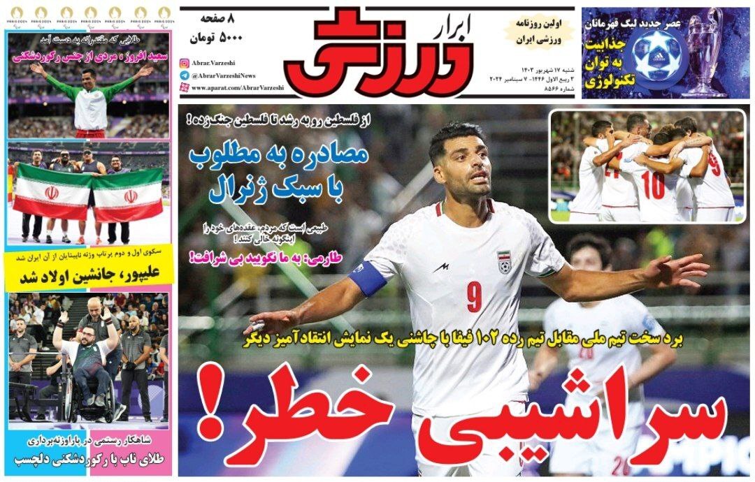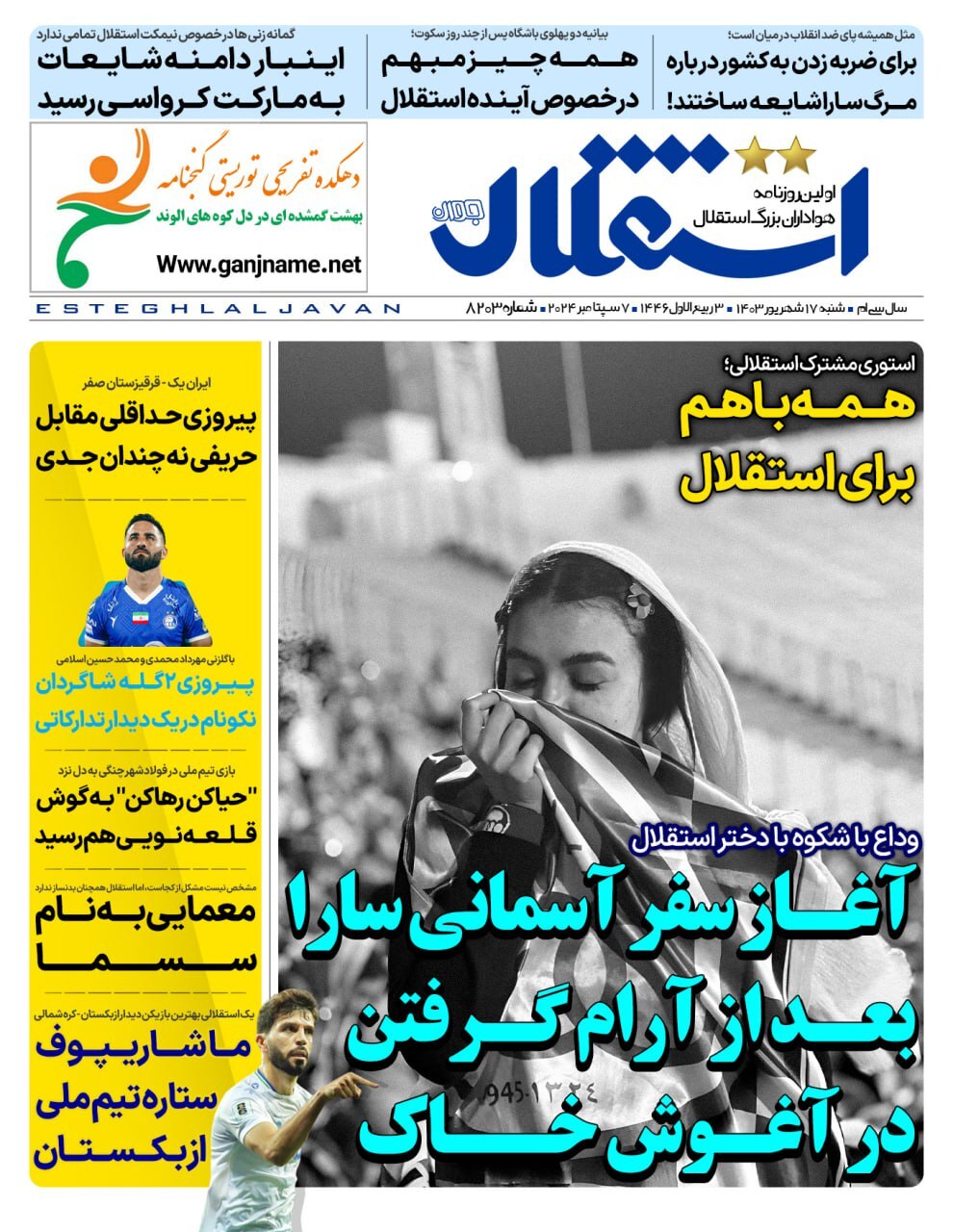روزنامه های ورزشی شنبه 17 شهریور 1403