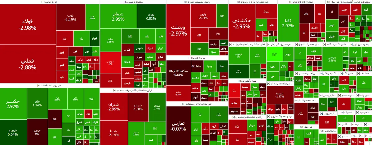 شاخص کل بورس امروز با کاهش ۷ هزار و ۶۶۵ واحدی در ارتفاع ۲ میلیون و ۱۰۱ هزار و ۶۲۸ واحدی قرار گرفت.
