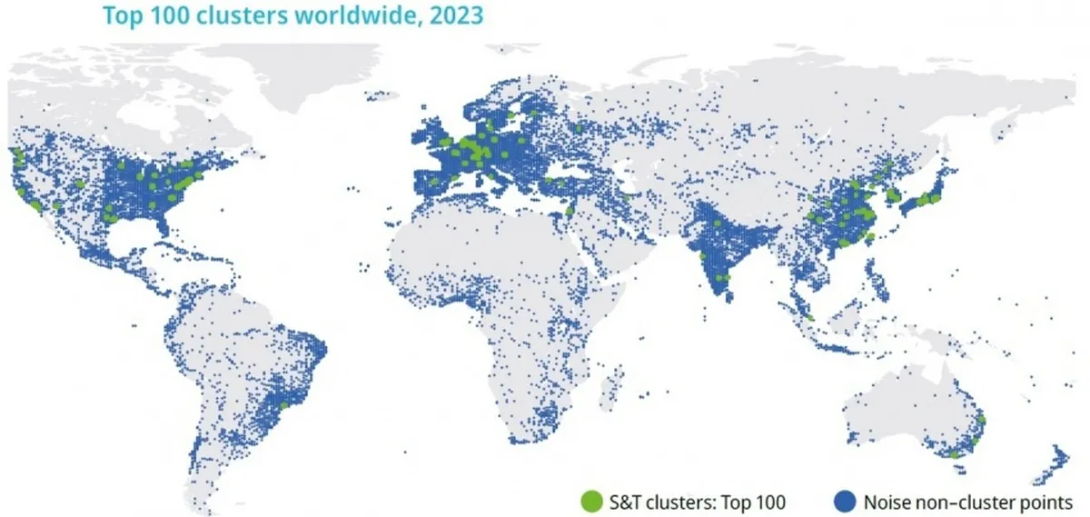 بر اساس گزارش سازمان جهانی مالکیت فکری، برترین خوشههای علم و فناوری دنیا در جنوب شرق آسیا در کشورهای ژاپن، چین و کره جنوبی قرار دارند. مناطق یوکوهاما در ژاپن، گوآنژو در چین و سئول در کره جنوبی به ترتیب رتبه اول تا سوم را به خود اختصاص دادهاند. اولین شهر غیرآسیایی، منطقه سانفرانسیسکو در آمریکا است که رتبه ششم را به دست آورده است.