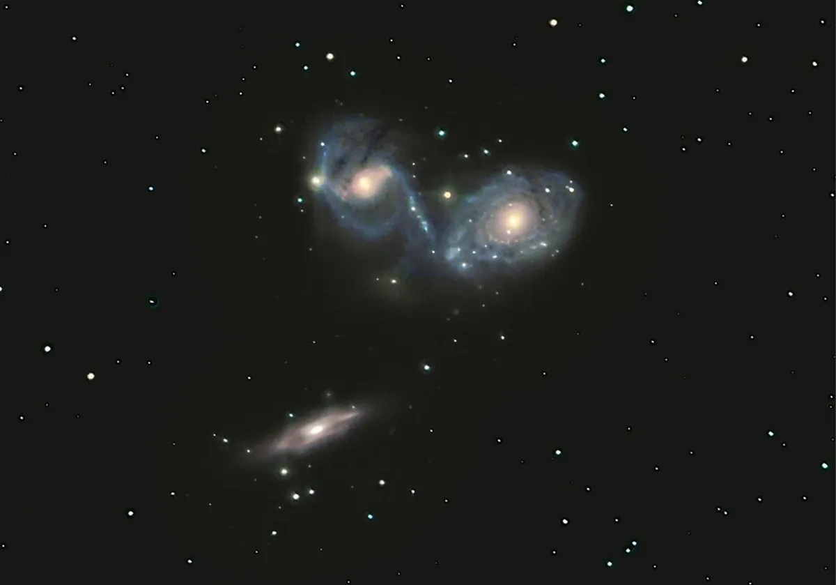 عکاس این تصویر فردی به نام کونیهیکو اوکانو (Kunihiko Okano) است و محل عکسبرداری رصدخانه سایدینگ اسپرینگ در استرالیا است. تاریخ/زمان ثبت عکس 9، 12 ژوئن و 4، 5 ژوئیه، 2024 است. تجهیزات مورد استفاده شامل Planwave CDK20 با FLI PL16803 است. تصویر رنگی از نوع RGB است اما هر رنگ زمان دریافت نوری متفاوتی داشت (قرمز 3 دقیقه در 7 حالت نوردهی، سبز 3 دقیقه در 6 حالت نوردهی و آبی 3 دقیقه در 7 حالت نوردهی) و از فیلترهای 2x2 binning و Astrodon E series2 LRGB استفاده شد. تصویر با StelaImage9 و PhotoShop با استفاده از Richardson-Lucy Deconvolution پردازش شد.