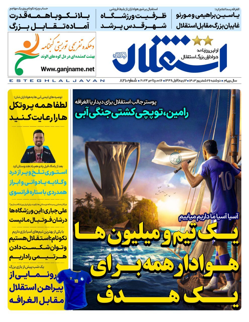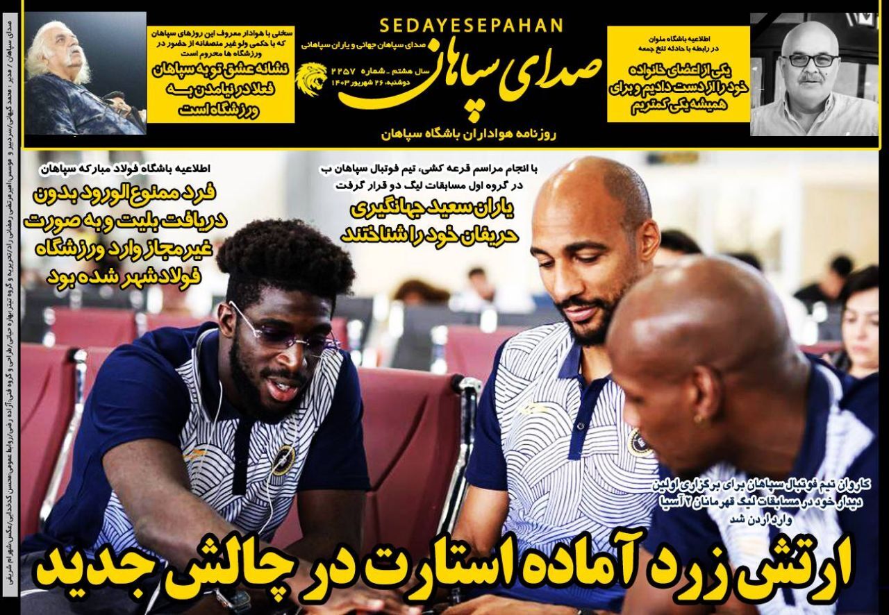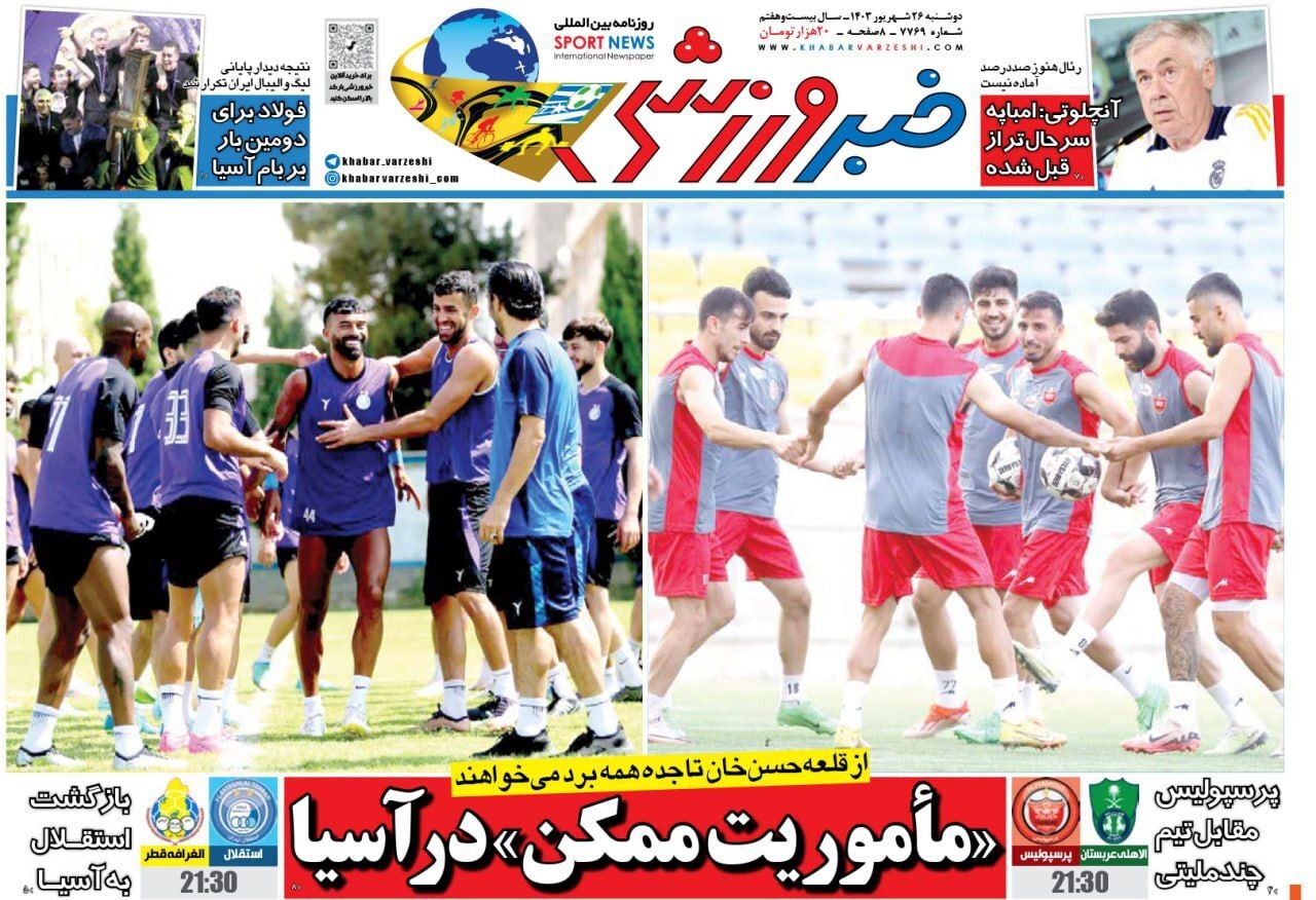 روزنامههای ورزشی دوشنبه ۲۶ شهریور ۱۴۰۳