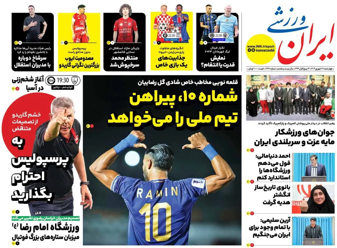 روزنامههای ورزشی چهارشنبه ۲۸ شهریور ۱۴۰۳