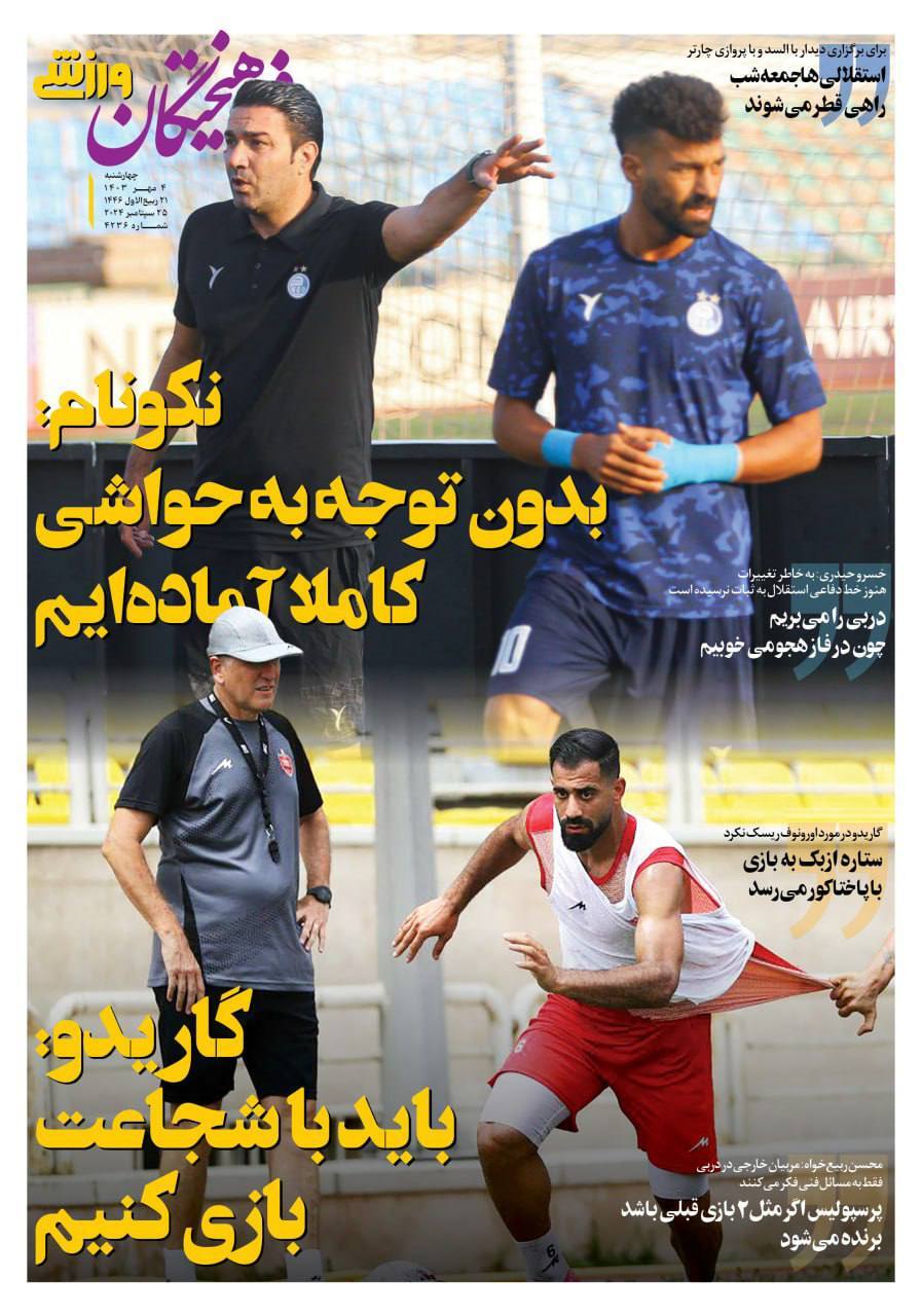 روزنامههای ورزشی چهارشنبه ۴ مهر ۱۴۰۳