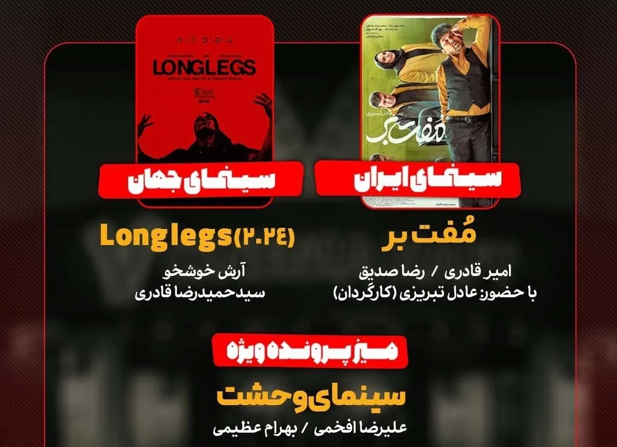 همچنین در میز سینمای جهان نیز، آرش خوشخو و حمیدرضا قادری فیلم «Longlegs» را مورد نقد و بررسی قرار میدهند.