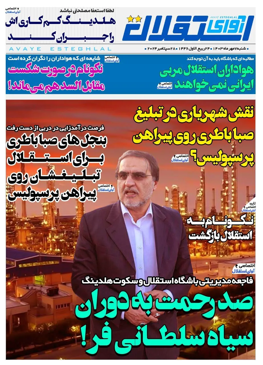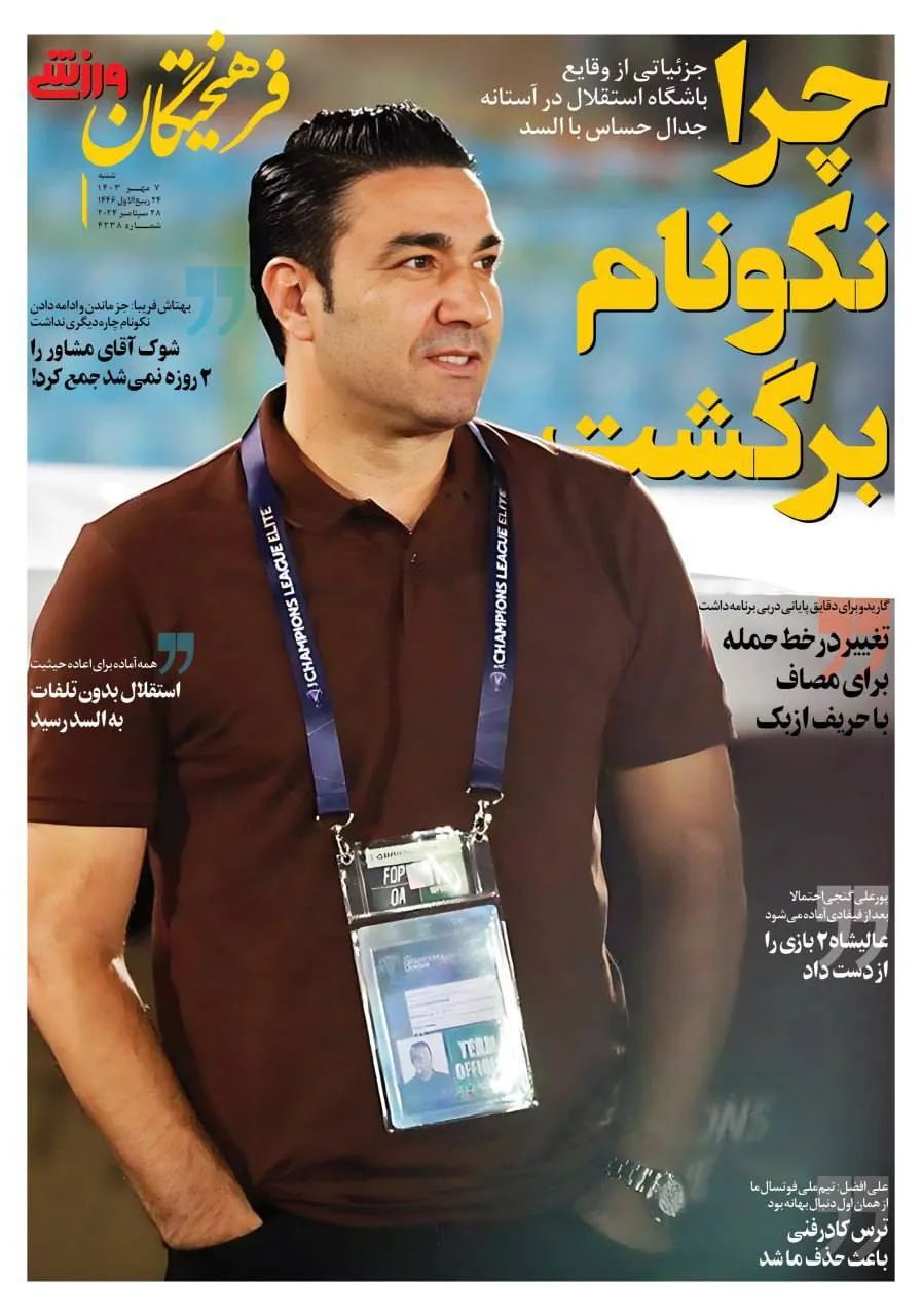 روزنامههای ورزشی شنبه ۷ مهر ۱۴۰۳