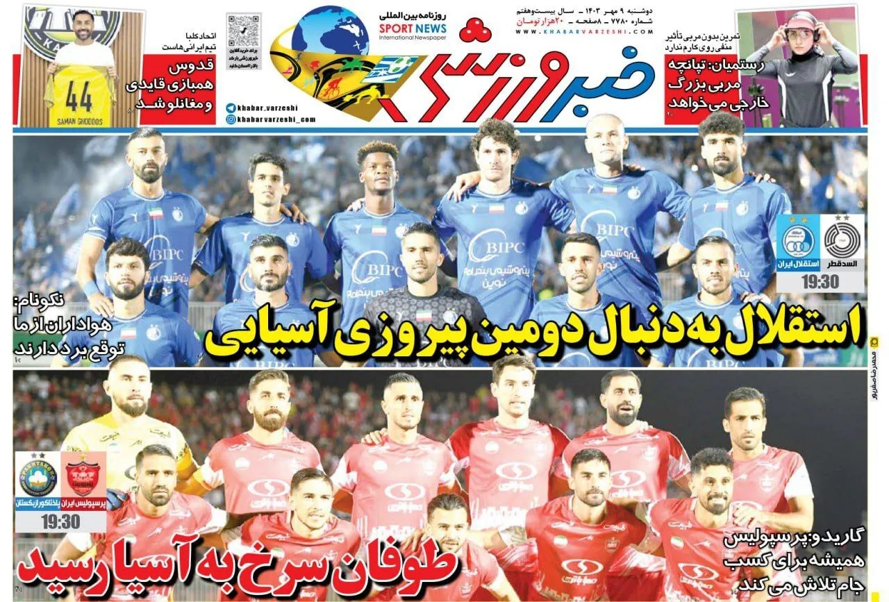 روزنامههای ورزشی دوشنبه ۹ مهر ۱۴۰۳