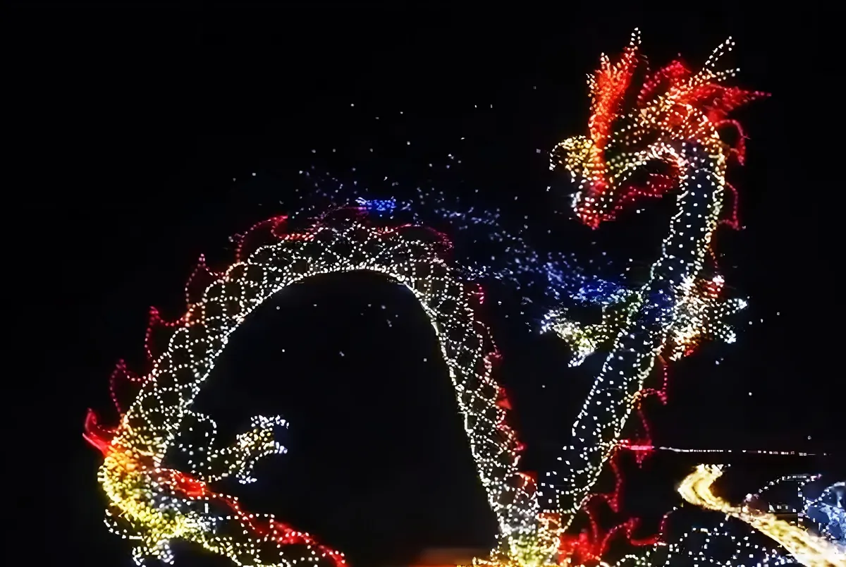 سازماندهی این برنامه توسط شرکتی چینی به نام جیلین (Jilin) صورت گرفت. پهپادها پس از پرتاب در آسمان، اشکالِ چشمگیر مختلفی را در آسمان شب خلق کردند؛ از جمله تصاویری از دیوار بزرگ چین، یک اژدهای غول پیکر و یک ببر. این رویداد خیرهکننده را میتوان جایگزینی سازگار با محیط زیست در عوض آتشبازیهای سنتی قلمداد کرد که بدون انتشار دود و به طور قابل توجهی ساکتتر انجام میگیرد.