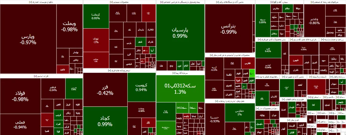 شاخص کل بورس امروز ۱۰ مهر ۱۴۰۳ با کاهش ۸ هزار و ۱۴۹ واحدی در ارتفاع ۲ میلیون و ۱۲۳ هزار و ۵۵۷ واحدی قرار گرفت.