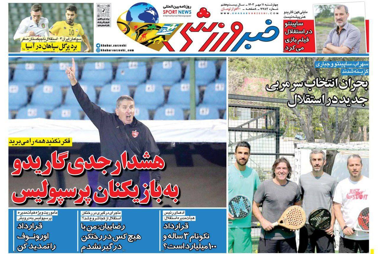روزنامههای ورزشی چهارشنبه 11 مهر ۱۴۰۳