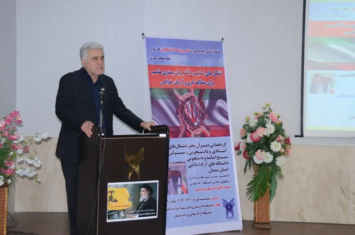 به گزارش خبرنگار آنا، مهدی منصوری رئیس دانشگاه آزاد اسلامی استان سمنان در گردهمایی دبیران تشکلهای استادان و دانشجویان استان سمنان با عنوان آغاز نصرالله در دانشگاه آزاد دامغان برگزار شد، اظهار کرد: شهدای خدمت و مقاومت به آرزوی قلبی خود رسیدند و در جوار خداوند متعال روزی میخورند؛ اما ما را داغدار فراغ خود کرده و مسیر را برای جامعه اسلامی روشن کردند.