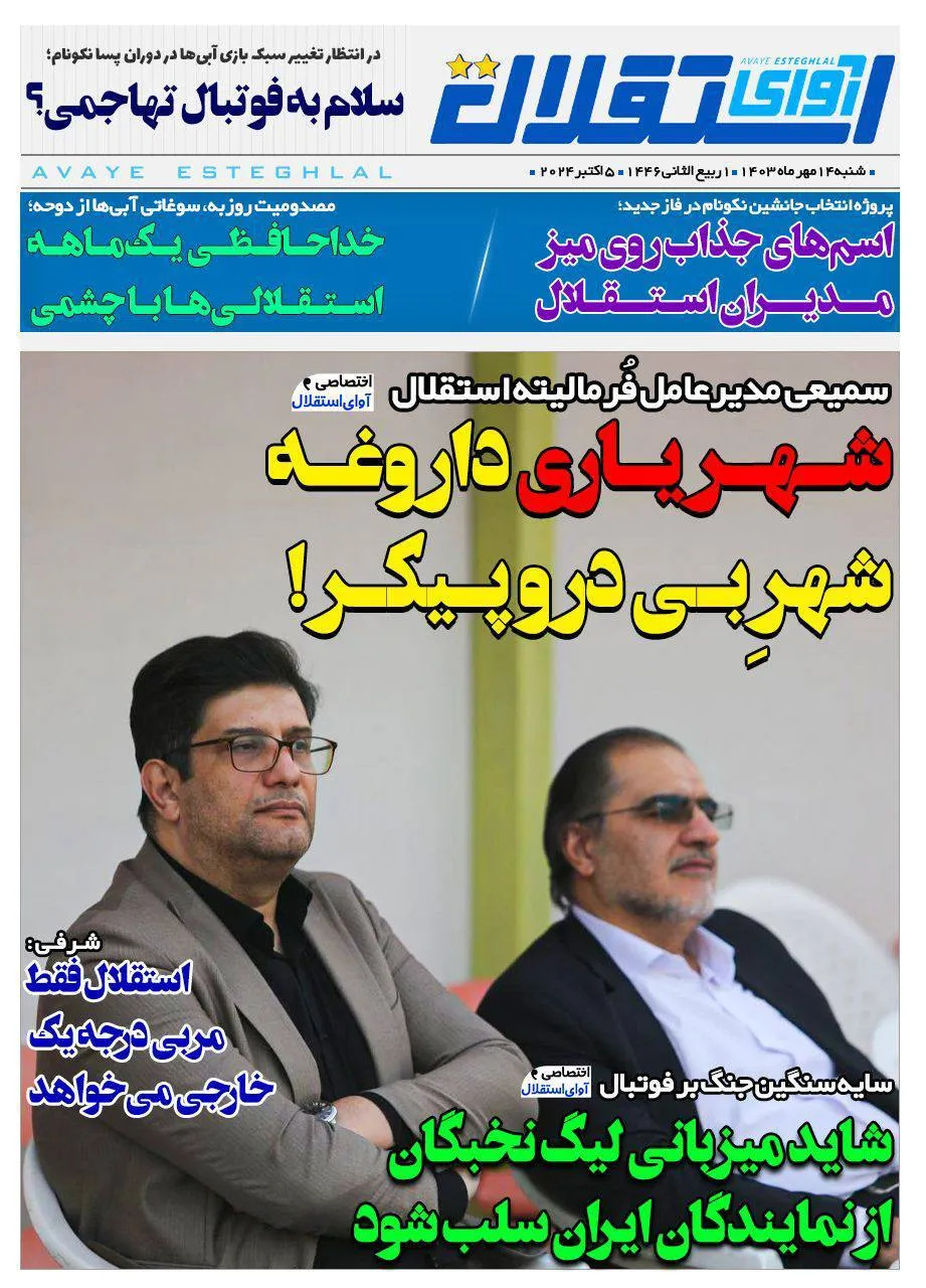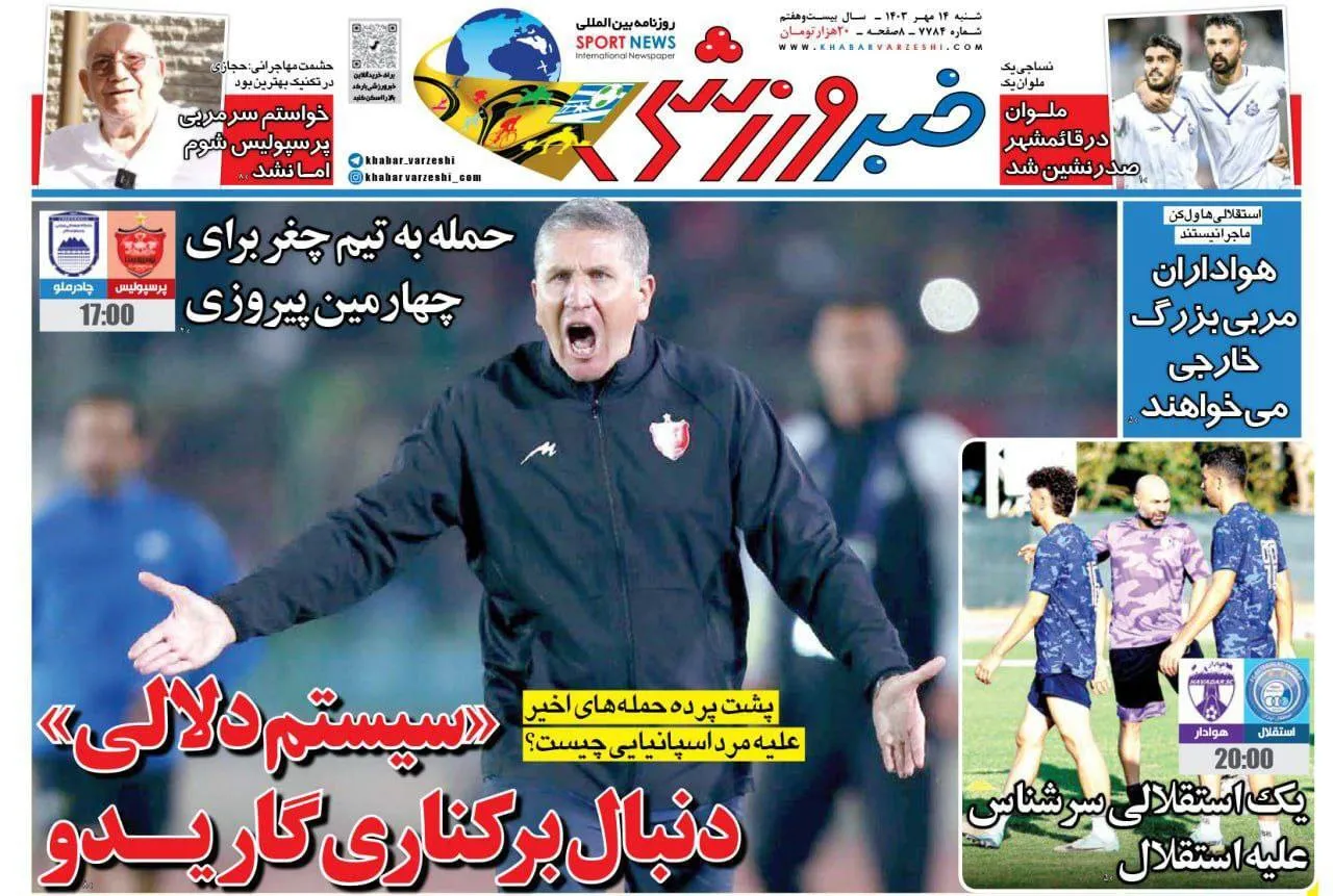 روزنامههای ورزشی شنبه 14 مهر 1403