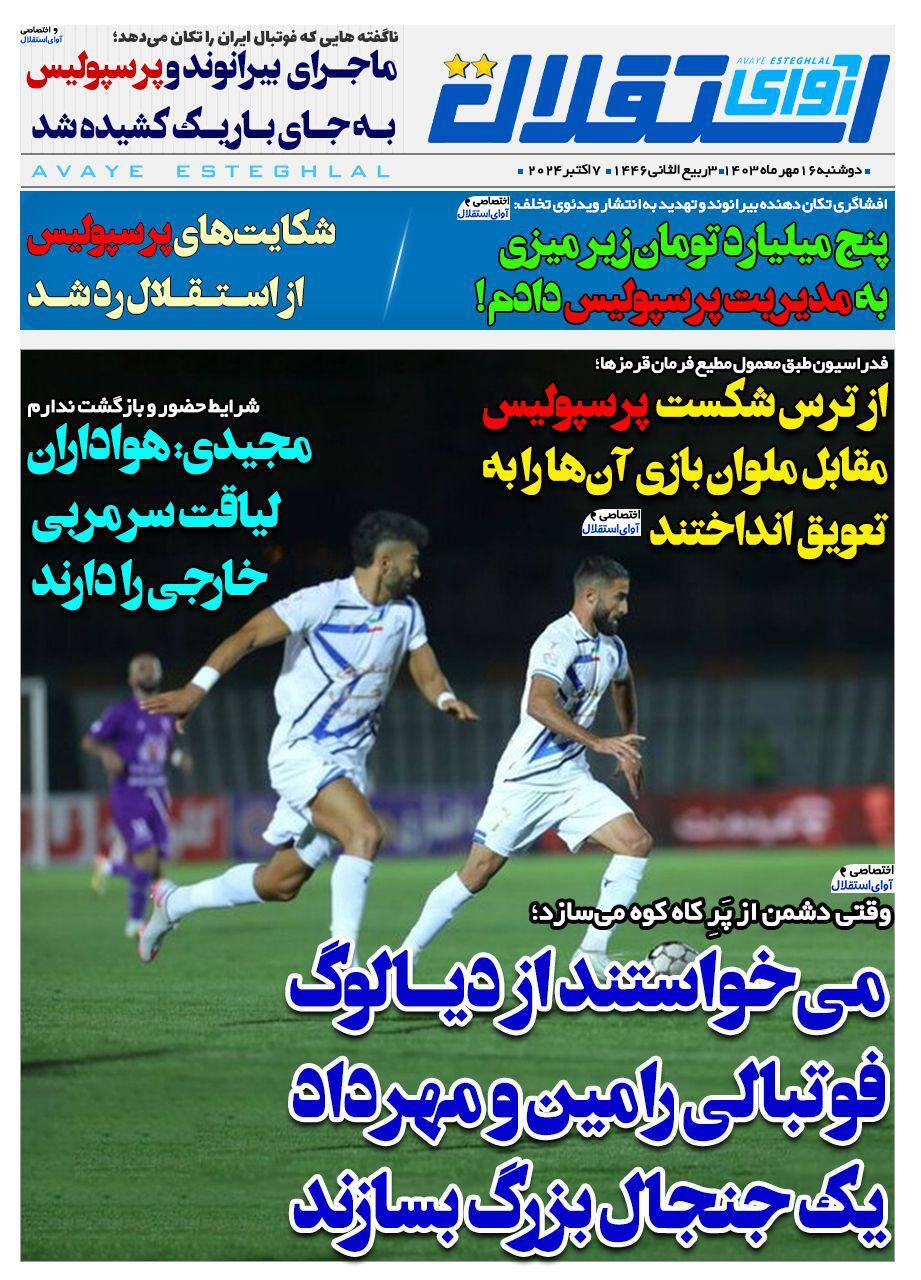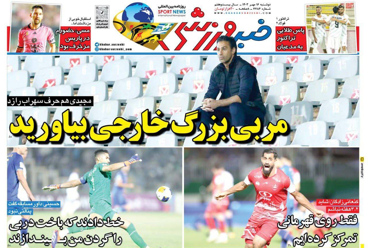 روزنامههای ورزشی دوشنبه 16 مهر ۱۴۰۳