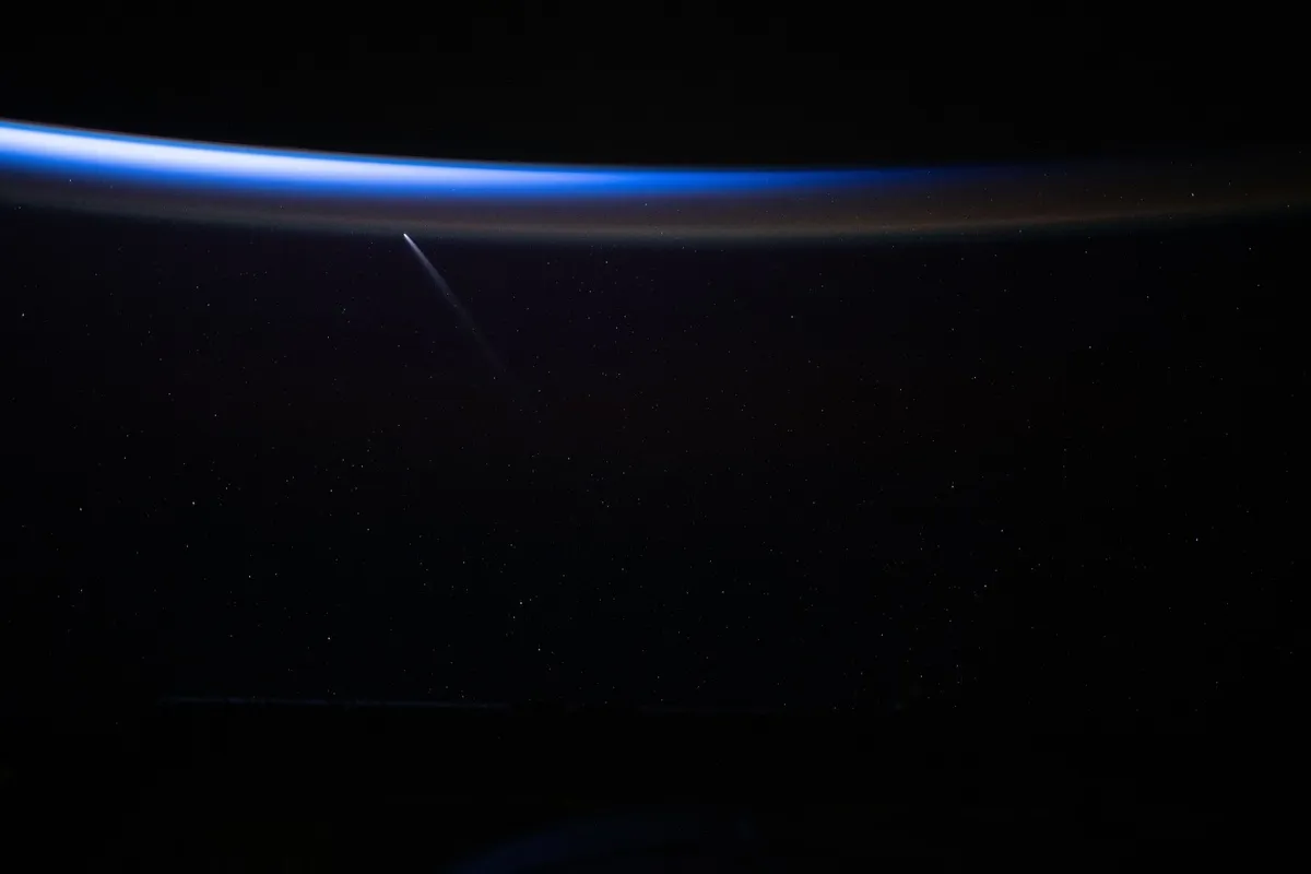 دنباله‌دار سوچینشان – اطلس (C/2023 A3) در این عکس دیده می‌شود. تصویر این دنباله دار از ایستگاه فضایی بین المللی در فاصله 44 میلیون مایلی از زمین ثبت شده است. این عکس درست قبل از طلوع خورشید در 28 سپتامبر 2024 در 272 مایلی بالاتر از اقیانوس آرام جنوبی در جنوب شرقی نیوزیلند گرفته شد.