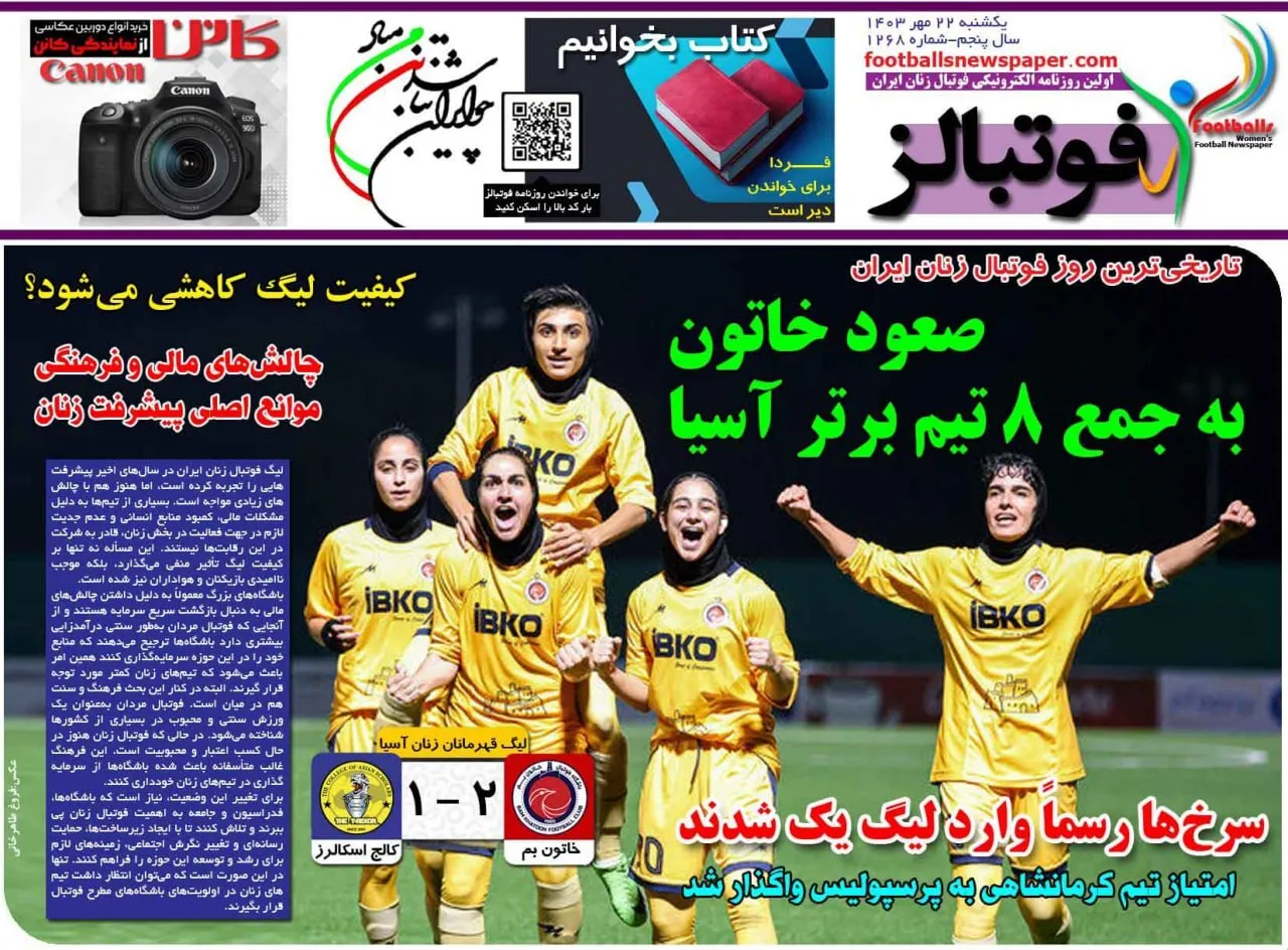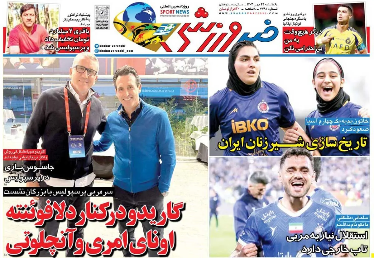 روزنامههای ورزشی یکشنبه ۲۲ مهر ۱۴۰۳