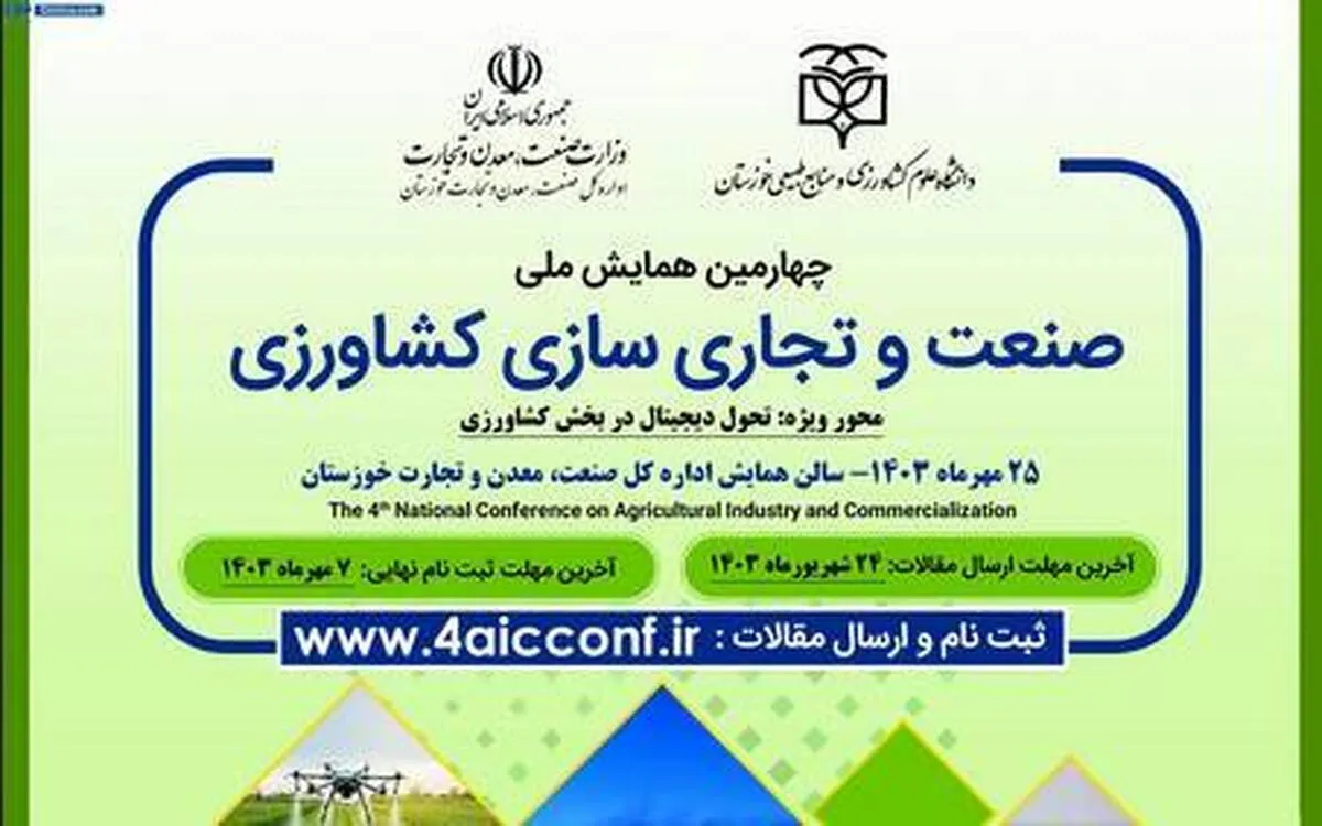 چهارمین همایش ملی صنعت و تجاری سازی کشاورزی، ۲۵ مهر، ۱۴۰۳ در شهر اهواز برگزار می‌شود.