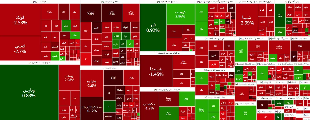 شاخص کل بورس امروز ۲۴ مهر ۱۴۰۳ با کاهش ۲۱ هزار و ۷۳۰ واحدی در ارتفاع ۲ میلیون و ۶۹ هزار و ۶۲ واحدی قرار گرفت.