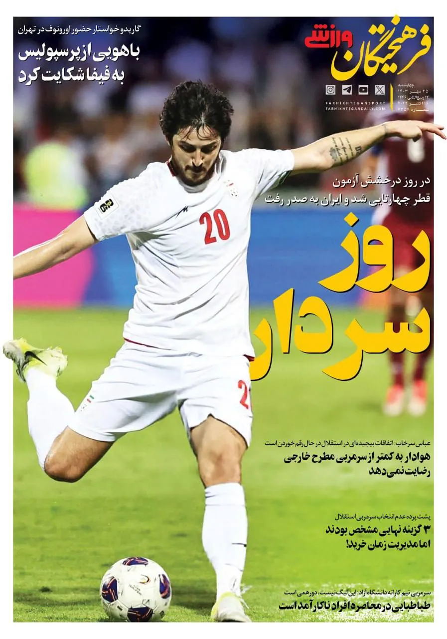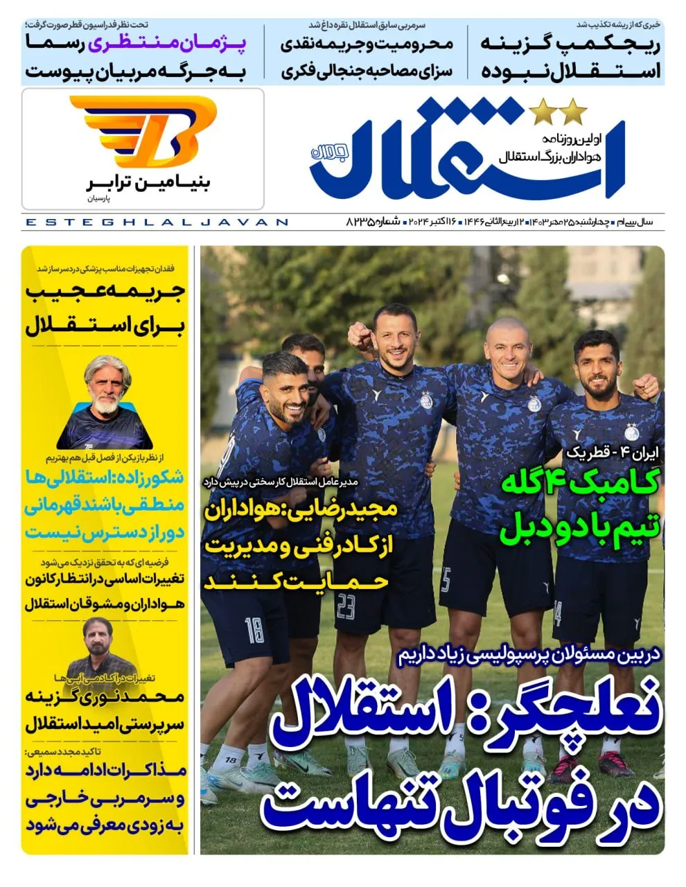 روزنامههای ورزشی چهارشنبه ۲۵ مهر ۱۴۰۳