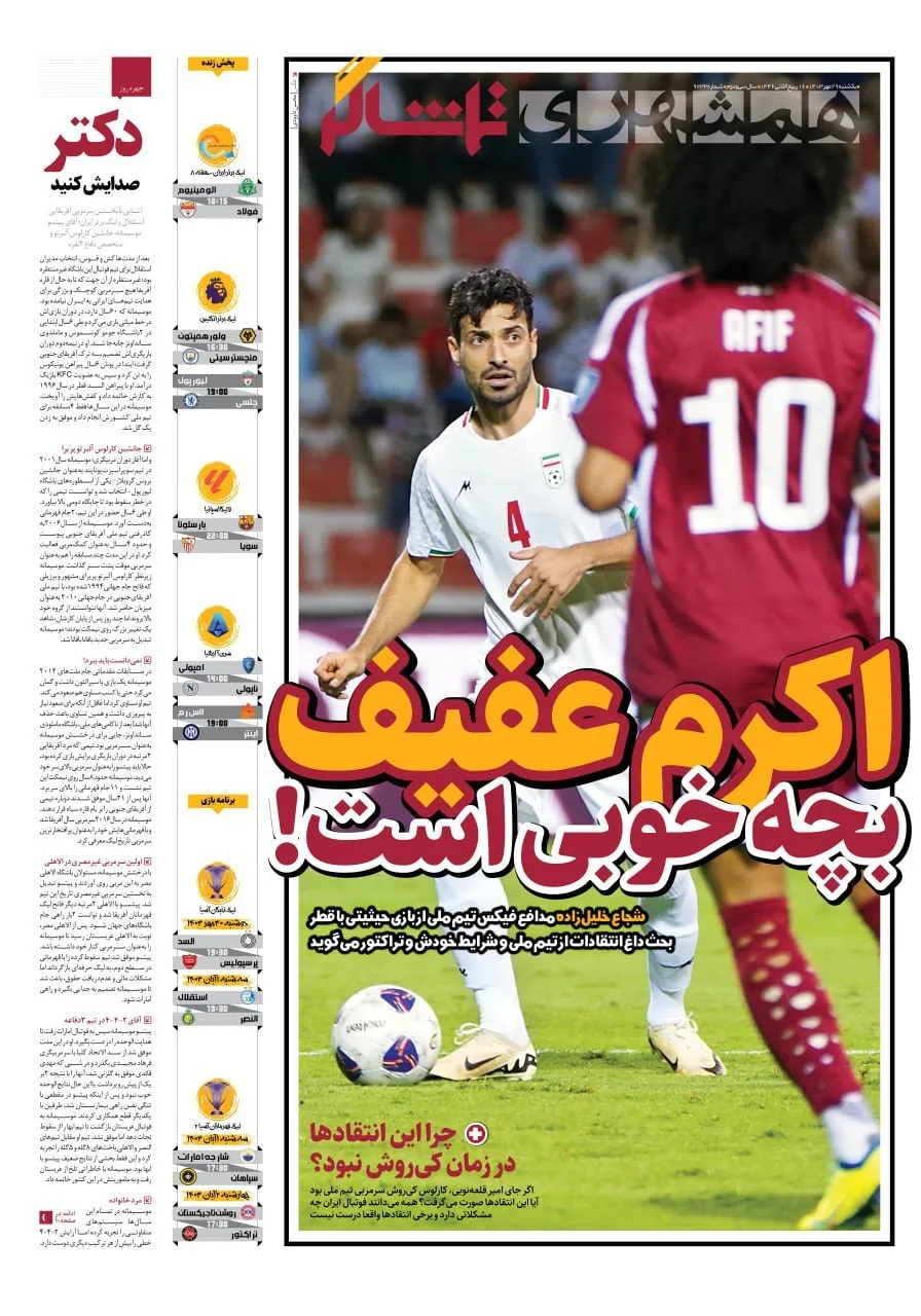 روزنامههای ورزشی یکشنبه ۲۹ مهر ۱۴۰۳