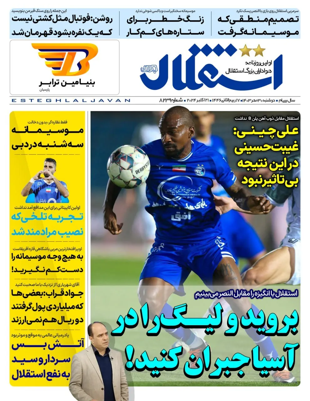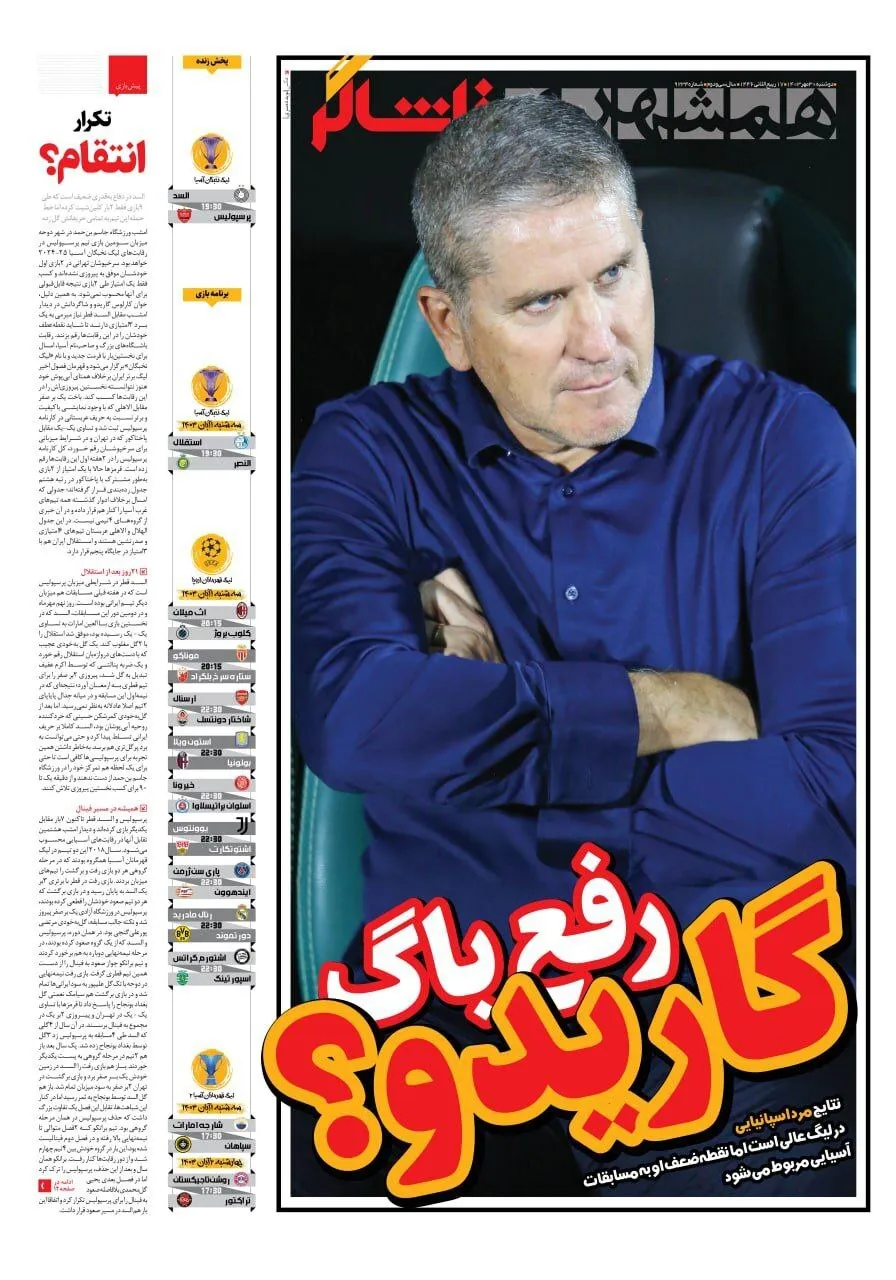 پیشخوان روزنامههای ورزشی دوشنبه ۳۰ مهر ۱۴۰۳ را مشاهده کنید.
