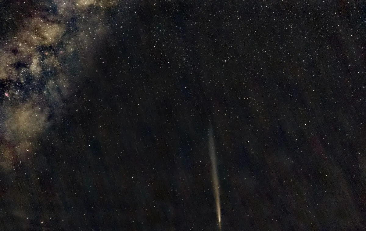 در تصویر دنباله دار سوچینشان-اتلس یا A3 را میبینید که دم بلندی به اندازه 25 درجه دارد و کهکشان راه شیری در پس زمینه میدرخشد.