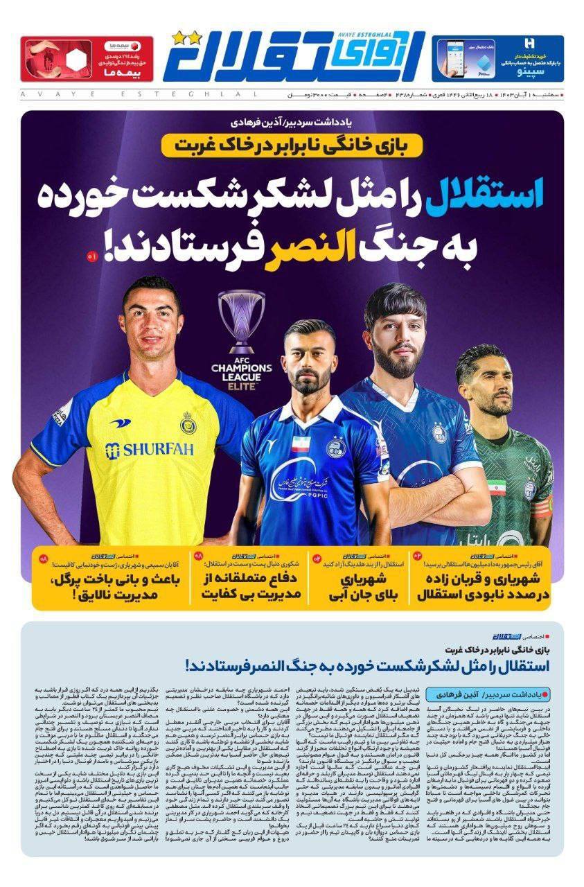 روزنامههای ورزشی سه شنبه اول آبان ۱۴۰۳