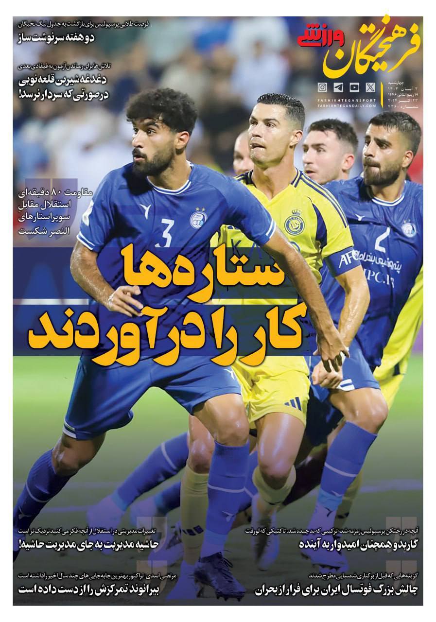 روزنامههای ورزشی چهارشنبه دوم آبان ۱۴۰۳