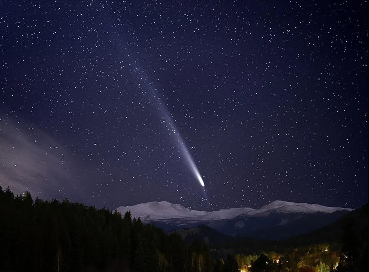 این عکس از دنبالهدار سوچینشان-اتلس (Tsuchinshan-ATLAS) در کلرادو به تاریخ 2024/10/21 ساعت 20:40 با تجهیزاتSony a7iii، لنز 85 میلی متری سونی، سه پایه و فاصله سنج ثبت شده است.