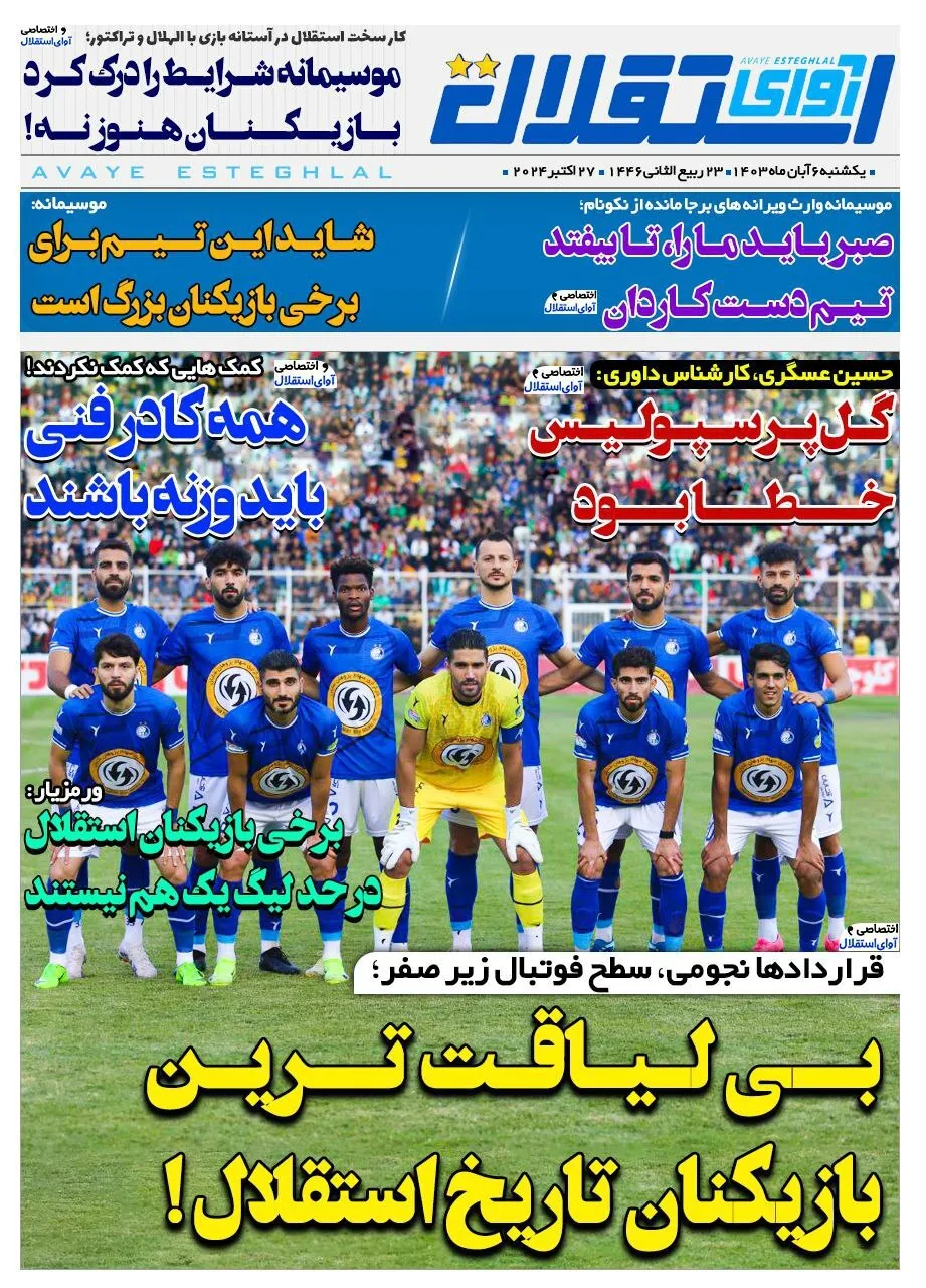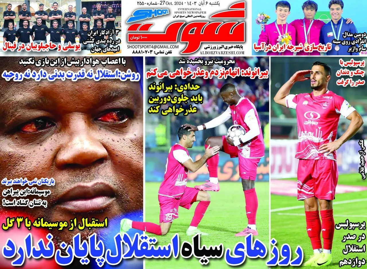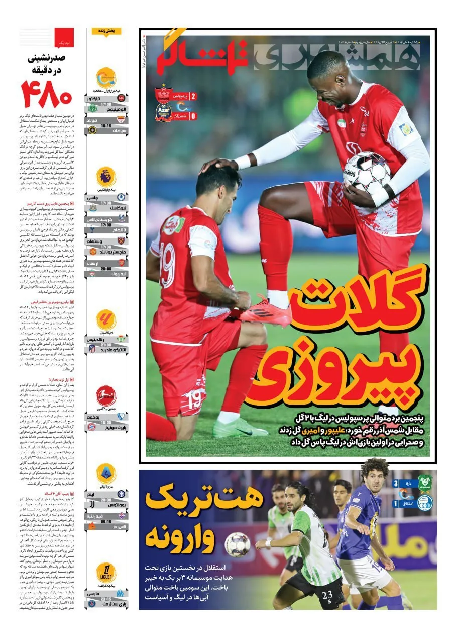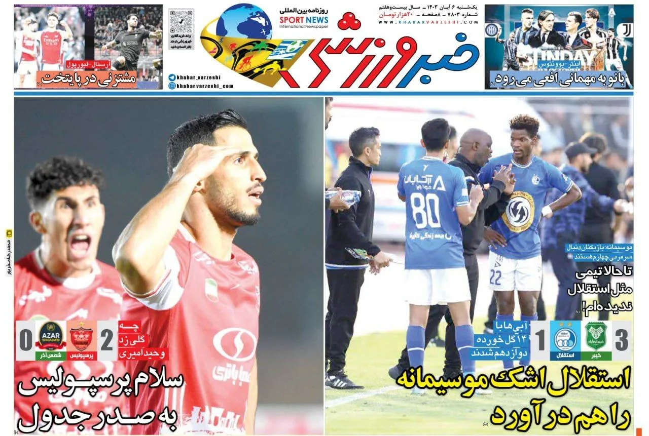 روزنامههای ورزشی ۶ آبان ۱۴۰۳