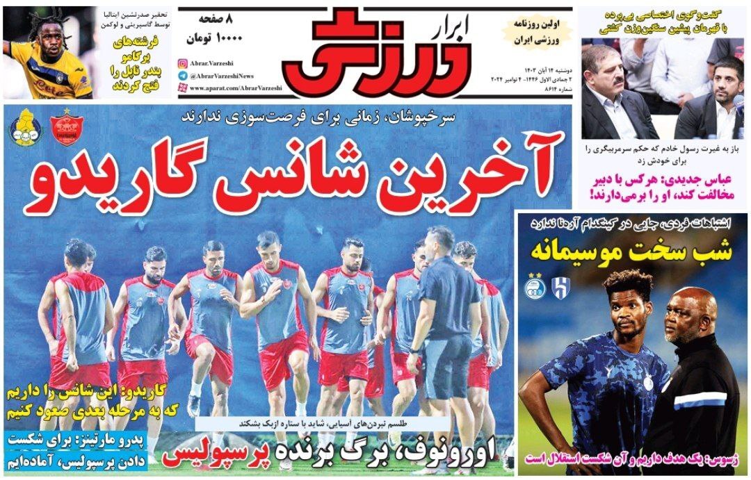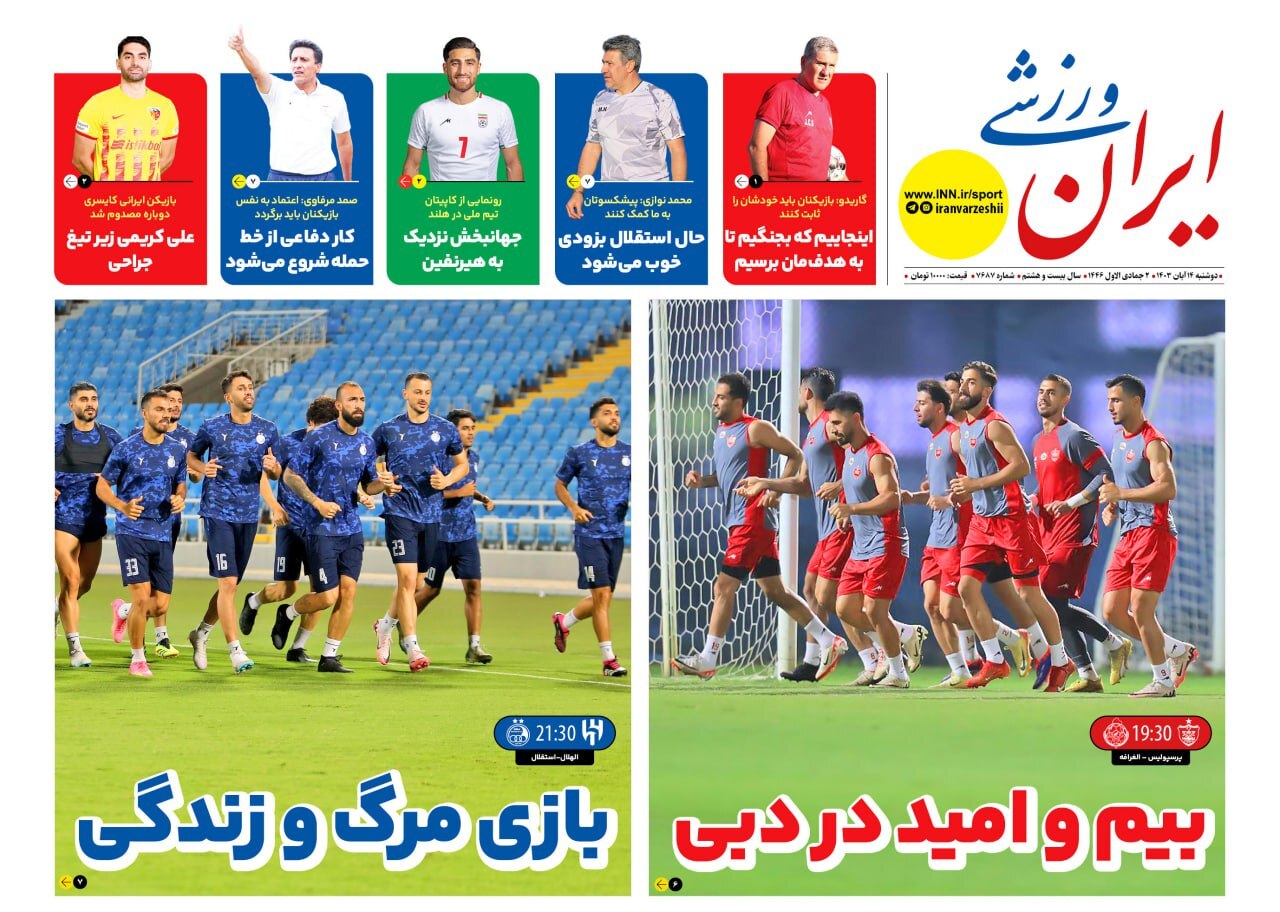 روزنامه‌های ورزشی دوشنبه ۱۴ آبان ۱۴۰۳