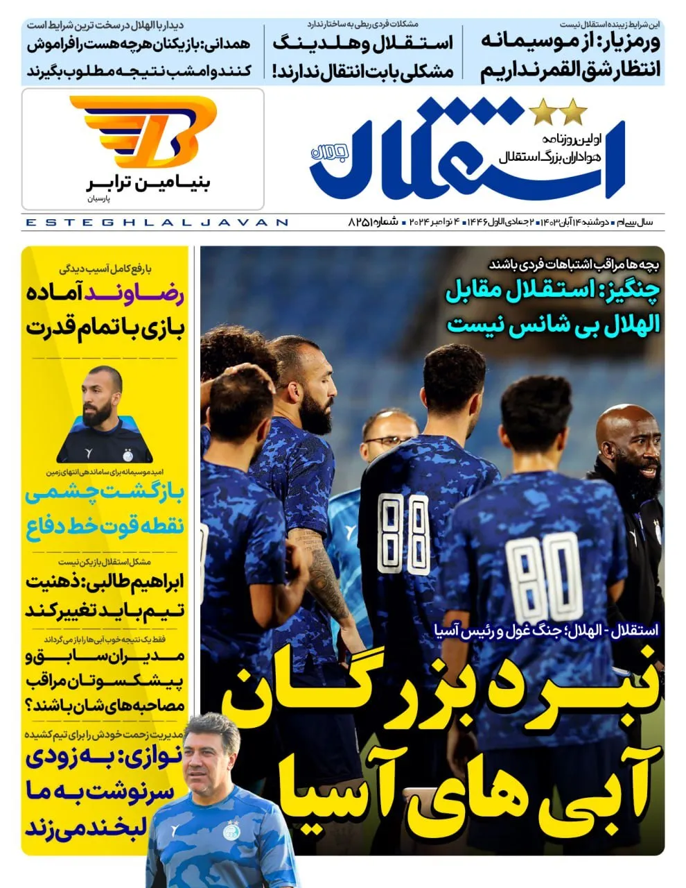 روزنامههای ورزشی دوشنبه ۱۴ آبان ۱۴۰۳