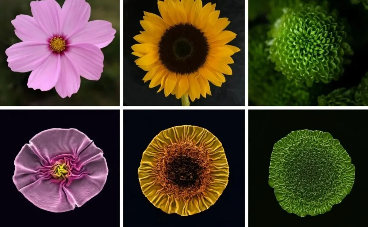 آنها در تلاش برای مشاهده زنده نمونه‌هایی از باکتریوفاژ‌ها (ویروس‌های باکتری خوار) که به طور غیررسمی «فاژها» خوانده می‌شوند، در زیر میکروسکوپ الکترونی، با شگفتی متوجه شدند که آنها به شکل‌های سه بعدی شبیه به گل آفتابگردان، اما با عرض تنها دو دهم میلی متر در آمده اند.