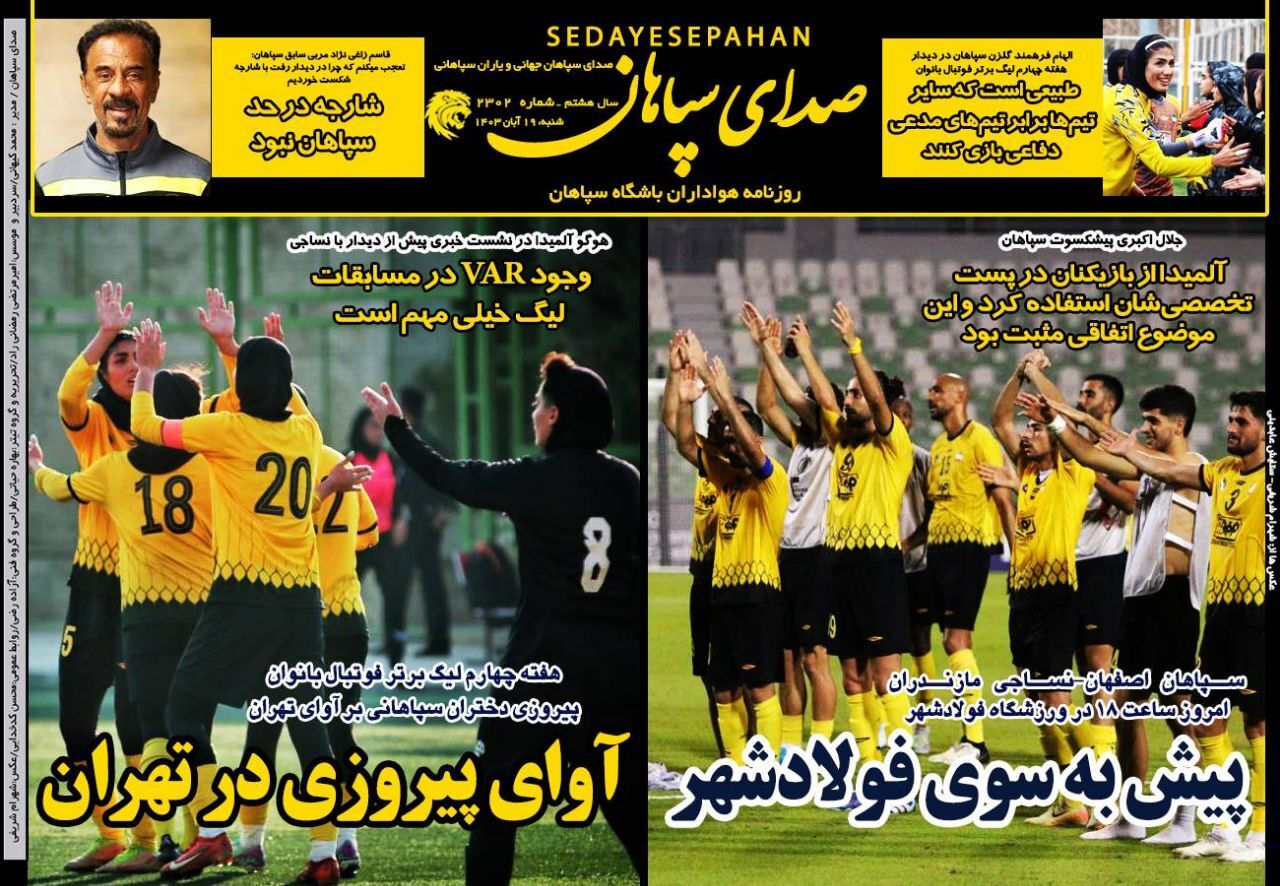 روزنامه های ورزشی شنبه 19 آبان 1403
